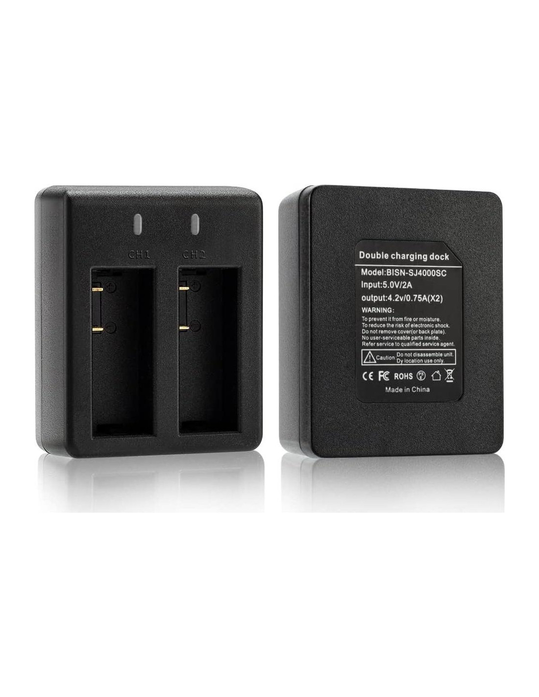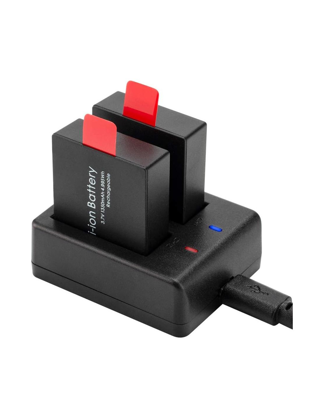 - [Carga Rápida] El diseño de este cargador de batería para cámara de acción es conveniente para cargar 2 baterías al mismo tiempo, ahorrando tiempo de carga de manera eficiente. La luz ROJA del cargador de batería indica que la batería se está cargando, la luz AZUL indica que la batería está completamente cargada o que no hay batería en carga.
