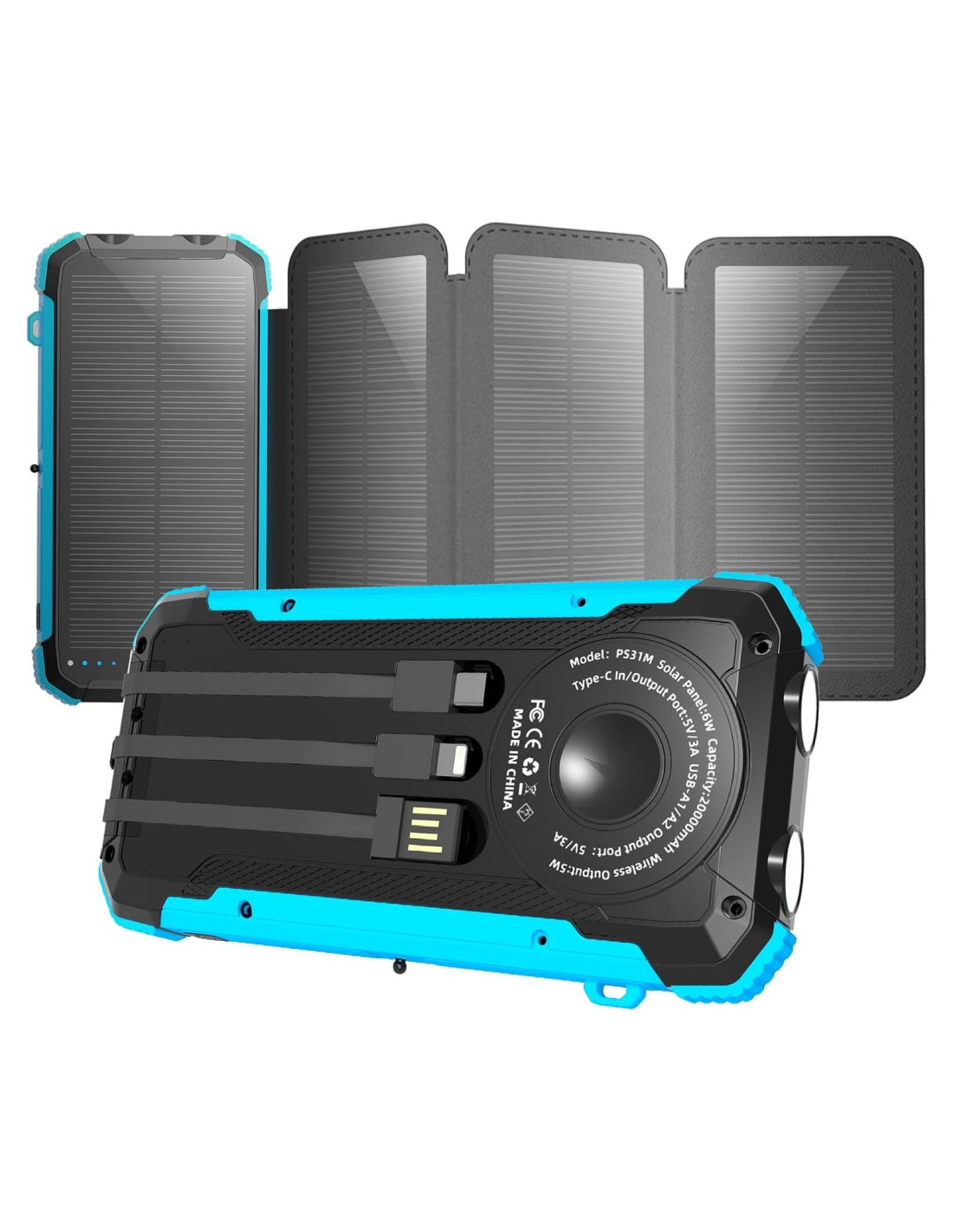- Banco de Energía de Alta Capacidad: el potente banco de energía solar ofrece una capacidad de 20,000mAh, proporcionando suficiente energía para cargar tus dispositivos múltiples veces. Ya sea que estés acampando, haciendo senderismo o necesites una fuente de energía de emergencia, este cargador portátil asegura que estés siempre cargado.