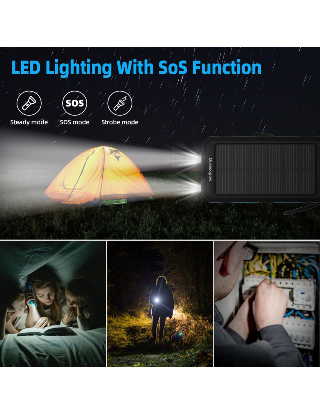 - Cargador Solar Portátil de Alta Calidad - cargador solar para teléfono resistente al agua, a prueba de golpes y a prueba de polvo, con mosquetón, brújula y 2 luces LED. El banco de energía solar proporciona más comodidad en tu día a día o en tu viaje. Ideal para actividades al aire libre como camping, senderismo y otros usos de emergencia. El paquete de batería USB solar puede considerarse un buen regalo.