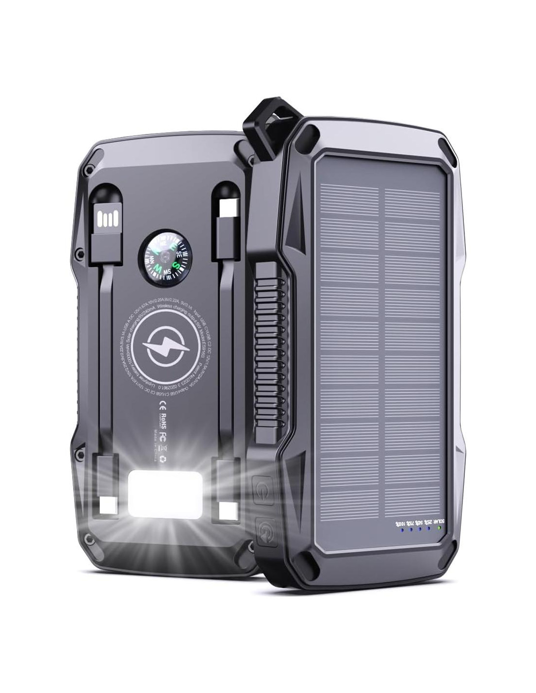 - [Multi-Funcional para Emergencias] Este cargador de teléfono solar incluye dos cables de carga rápida (Type-C a Type-C, USB-A a Type-C), una brújula incorporada y una linterna LED de 5 modos (bajo, medio, alto, estroboscópico, SOS). Ideal para esenciales de camping, accesorios de senderismo y regalos de camping para hombres. Una elección perfecta para aventureros al aire libre y regalos para senderistas, proporcionando conveniencia y fiabilidad durante emergencias. También es excelente para cualquiera que busque un banco de energía solar con cables que esté listo para cualquier situación.