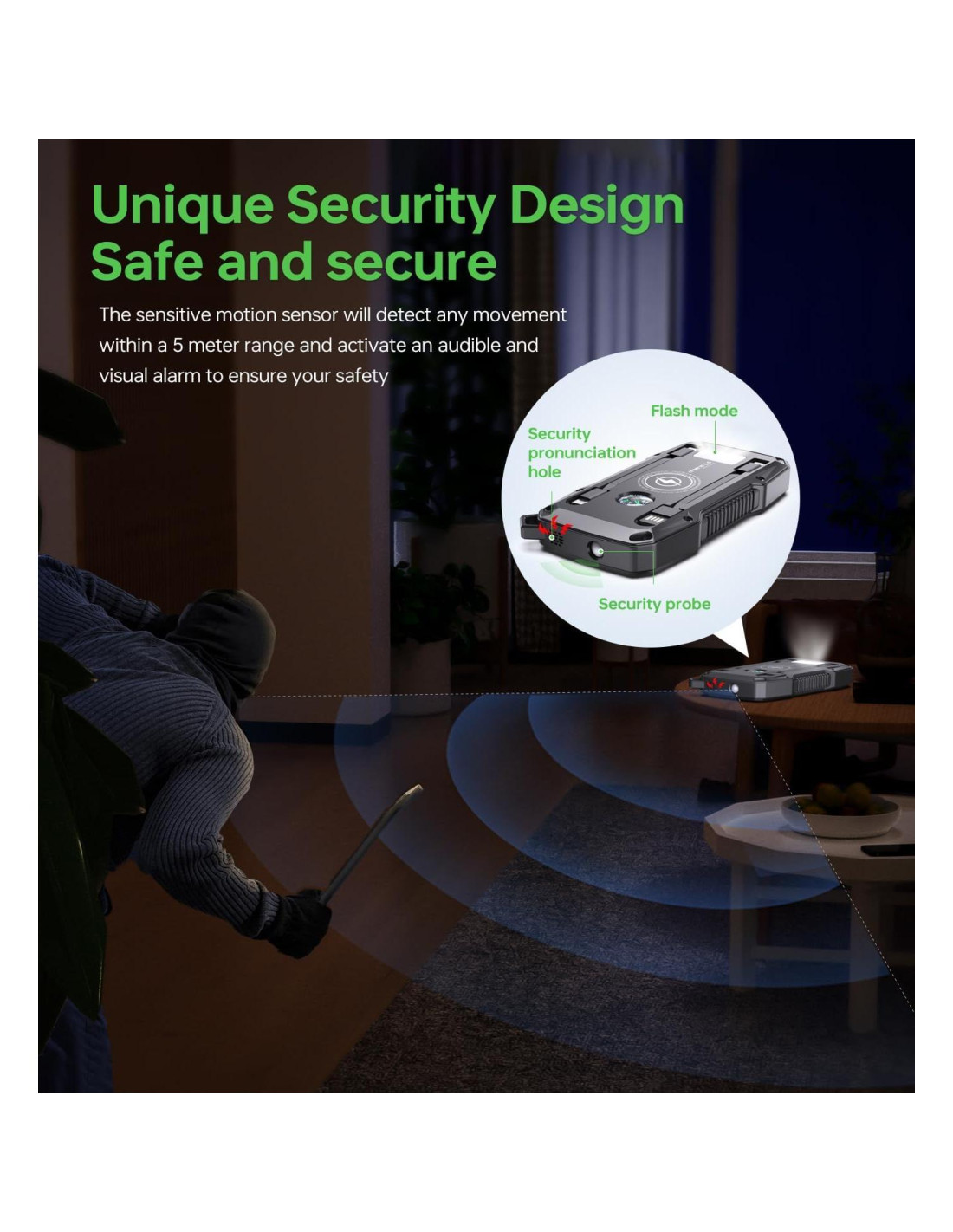 - [Seguridad Avanzada para Aventuras al Aire Libre] El Banco de Energía Solar ABFOCE 10,000mAh mejorado en 2025 es más que solo una fuente de energía - es uno de los gadgets de camping más geniales y tu guardián definitivo al aire libre. Con un sensor de movimiento que detecta actividad dentro de 5 metros, activa alertas sonoras y luminosas para ayudar a proteger tus objetos de valor. Ideal para esenciales de camping, viajes de caza e incluso asegurar equipo en sitios remotos o estancias en Airbnb. También es uno de los regalos más geniales para senderistas que valoran tanto la energía como la protección.