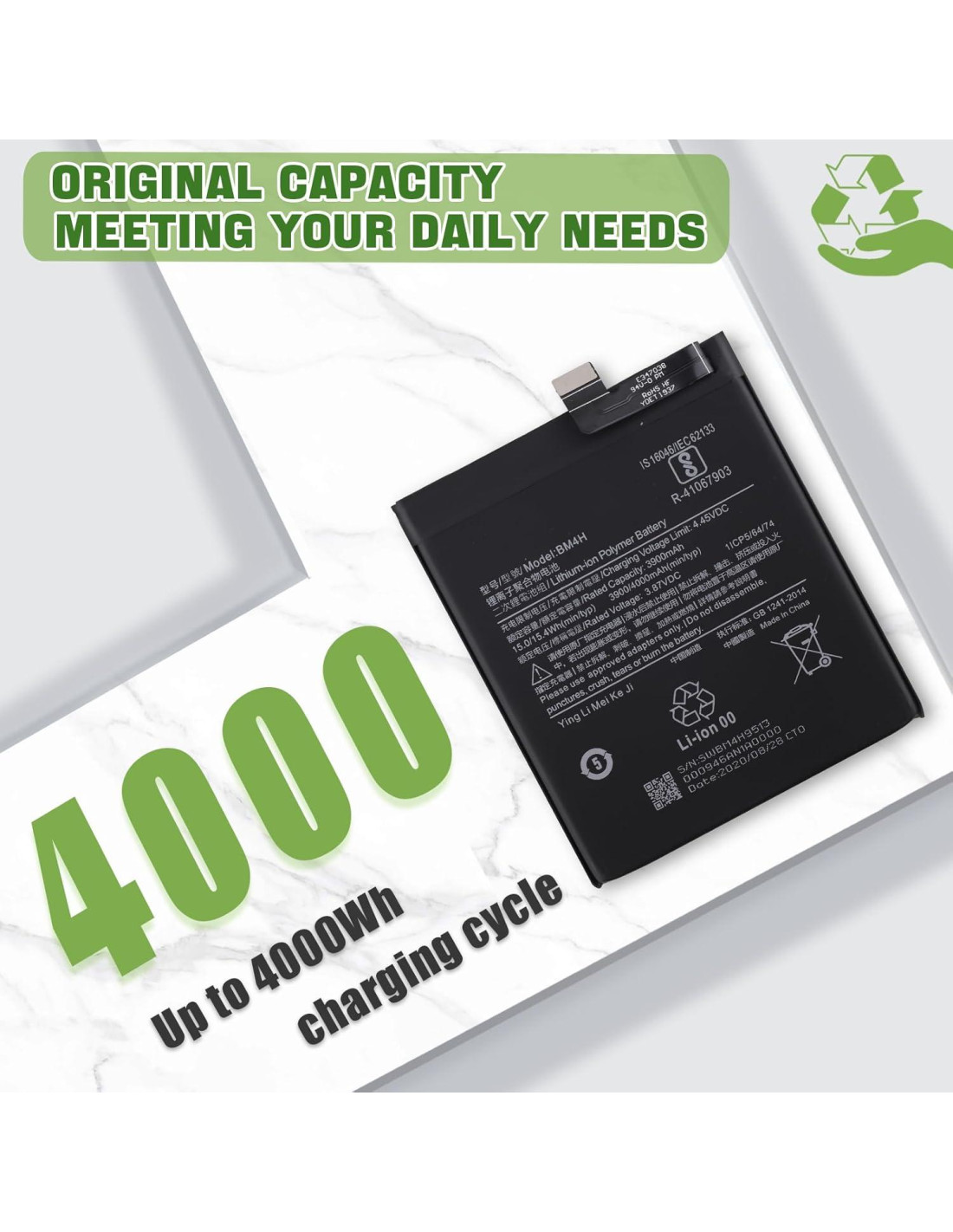 - Más capacidad: Modelo de batería: BM4H, 4000mAh / 15.4Wh, 3.87V. Mayor capacidad y mayor duración. Esta batería prolonga el tiempo de servicio del teléfono, puedes usar la batería de alta capacidad directamente sin preocuparte por quedarte sin energía y cerrar algunas aplicaciones todo el tiempo.