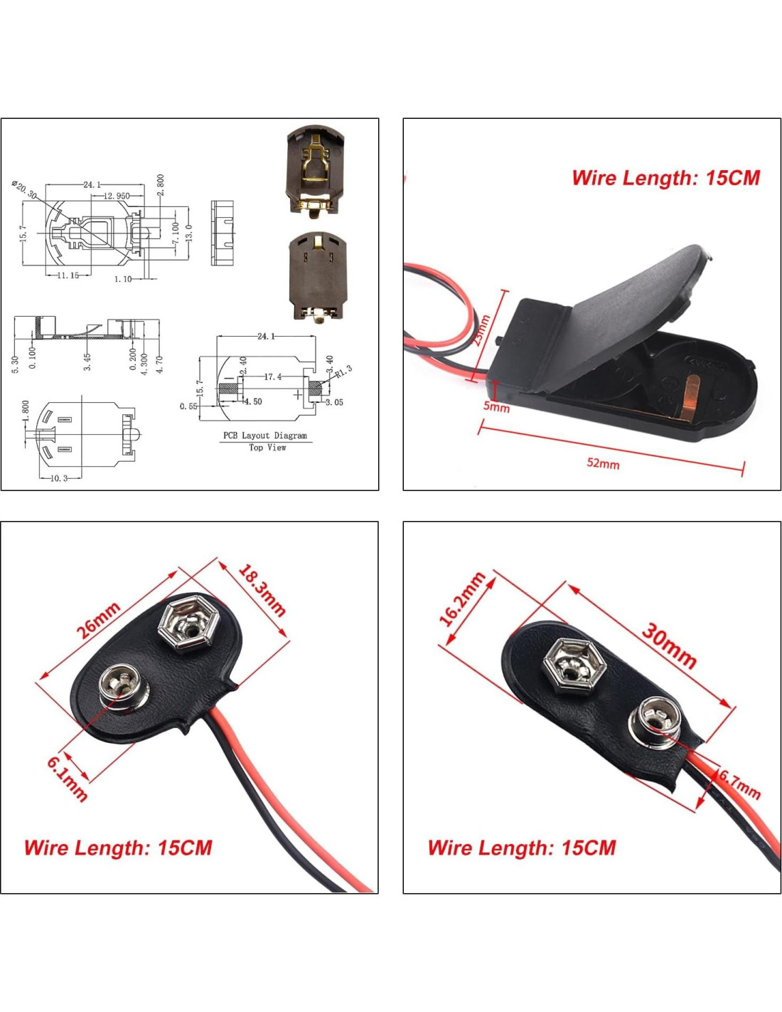 - Soporte de Batería: 24 piezas; Soporte de Batería de 9 Voltios con Cable: 10 piezas