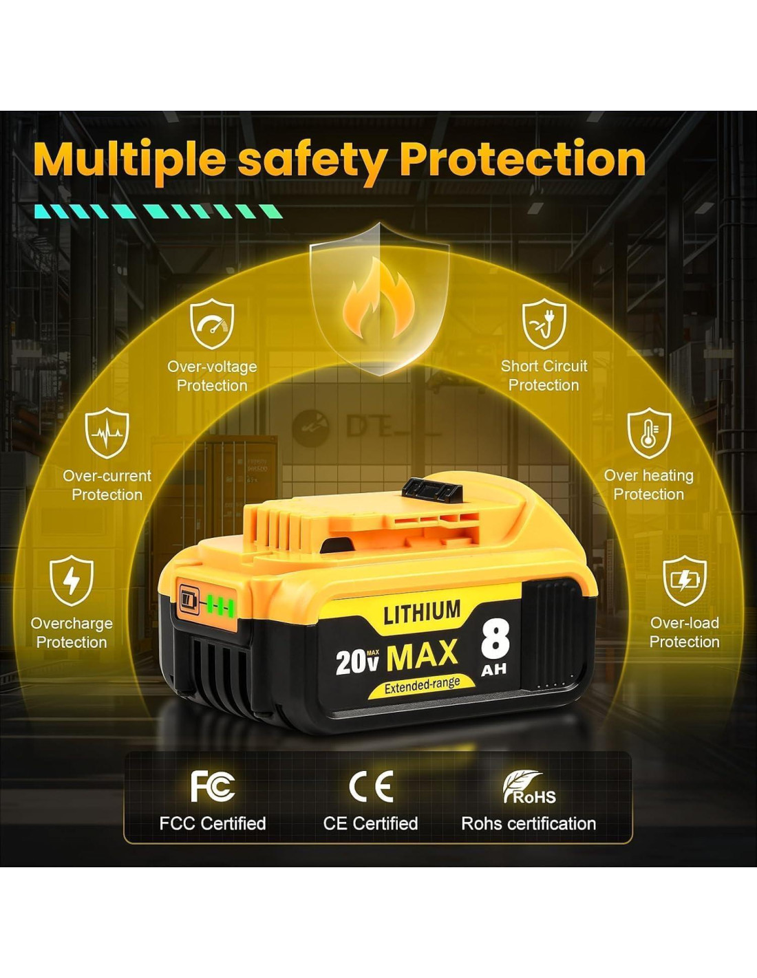 - [Compatible con Herramientas y Batería Dewalt 20V] Reemplazo para Batería Dewalt 20V Max DCB206 DCB205 DCB204 DCB203 DCB208. Compatible con taladro inalámbrico Dewalt 20V (DCD805B, DCD771B, DCD793B, DCD800B, DCD794, DCD999B, DCD996B, DCD799B etc.), sierra recíproca, herramienta de amoladora angular, pistola de calor, cepillo, sierra de calar etc.