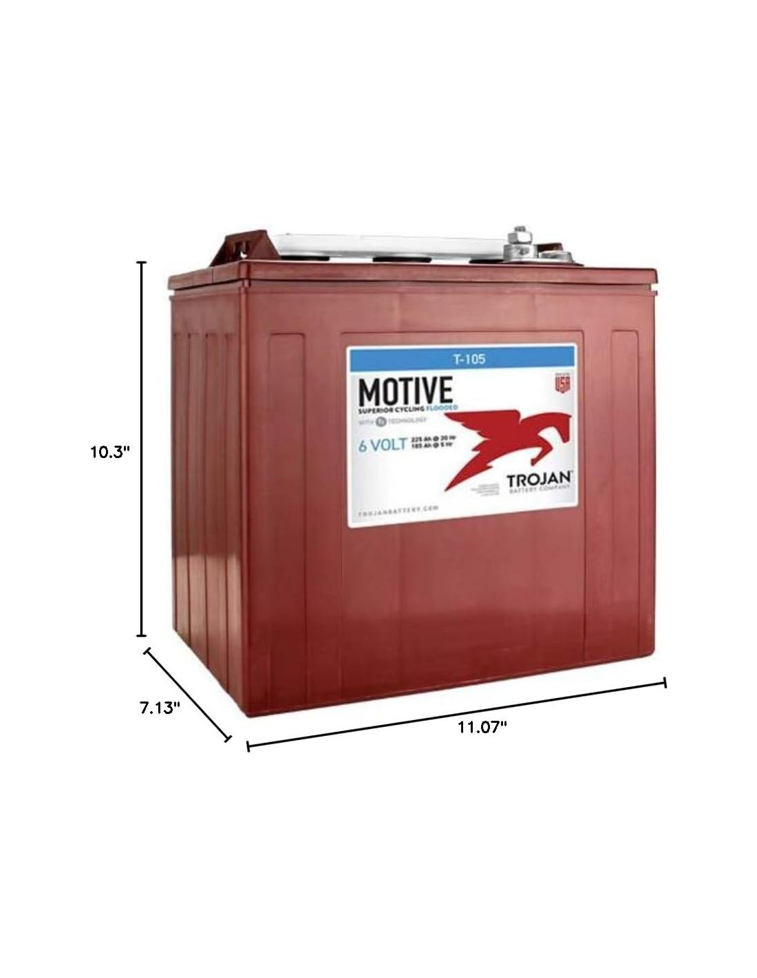 - Las Trojan T105 son recomendadas para lo siguiente y más: Carrito de Golf, RV, Marina, Energía Solar y Eólica, Máquina de Piso, Elevador de Hombre, Remolque de Aeronaves y Camión.