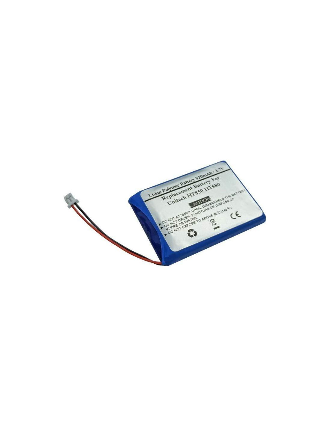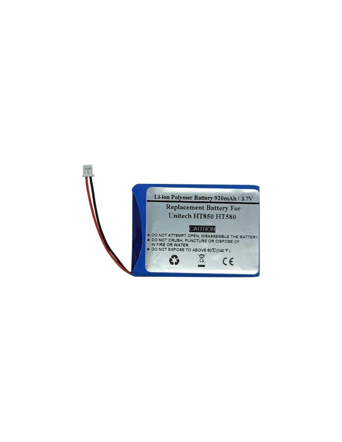Tipo de Batería: Batería de polímero de litio Capacidad: 920mAh Voltaje nominal: 3.7V Dimensiones del paquete: 5.5 x 34.5 x 44.0mm Peso: 12g Modelos compatibles: Unitech HT850 HT580