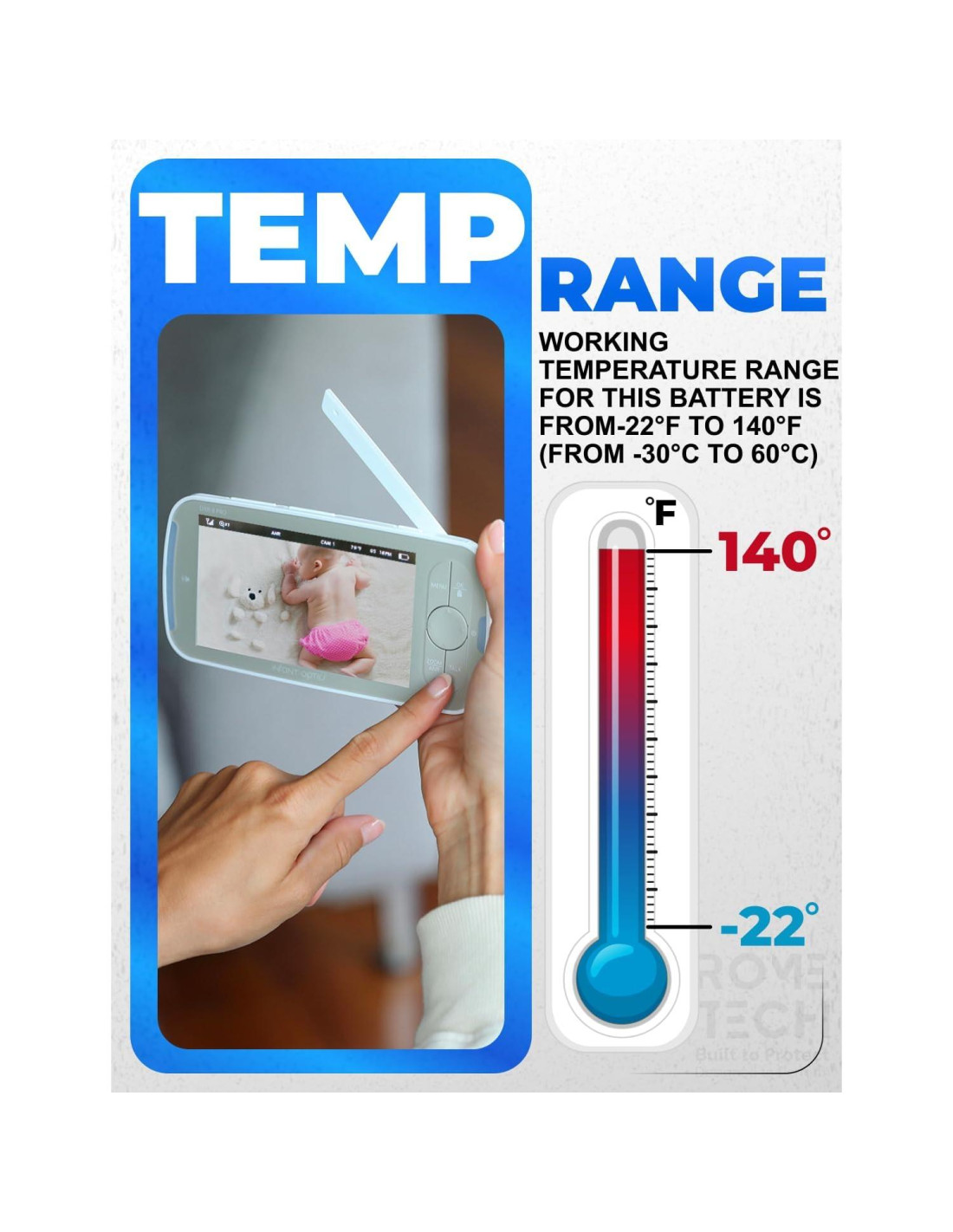 - Rendimiento Duradero: Con una alta capacidad, esta batería para el Monitor de Bebé DXR-8 Pro asegura un uso prolongado de los dispositivos.