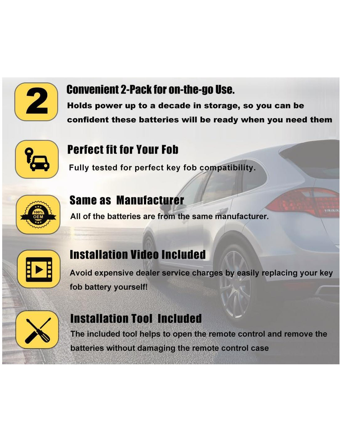 - SIMPLIFICA EL REEMPLAZO DE BATERÍA - Evita costosas tarifas de servicio del concesionario reemplazando fácilmente la batería de tu llave tú mismo. No es necesario programar el control remoto. La herramienta incluida ayuda a abrir el control remoto y quitar las baterías sin dañar la carcasa del control remoto.