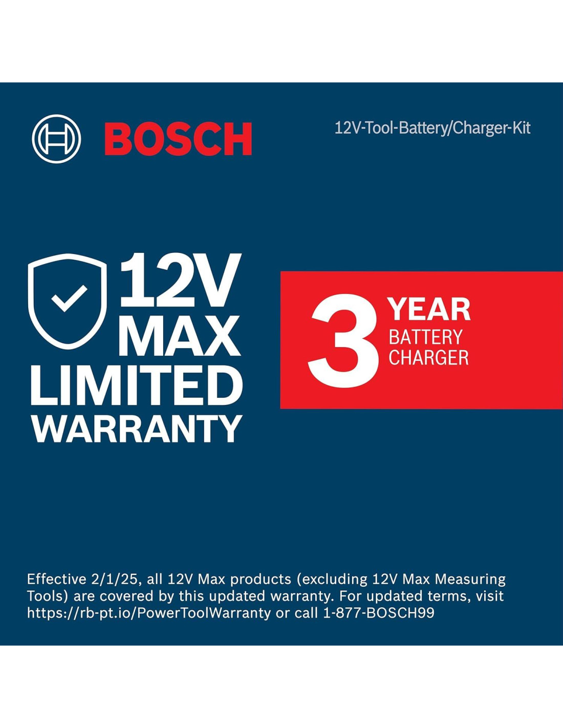 - Los cargadores y baterías de 12V Max de Bosch están cubiertos por una garantía limitada de tres años