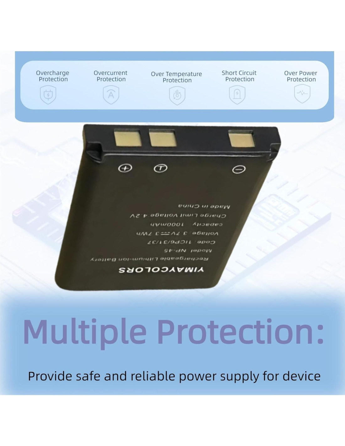 - El circuito inteligente IC en esta batería recargable NP-45 de 1000mAh proporciona energía estable, eficiente y un alto rendimiento duradero para su auricular.