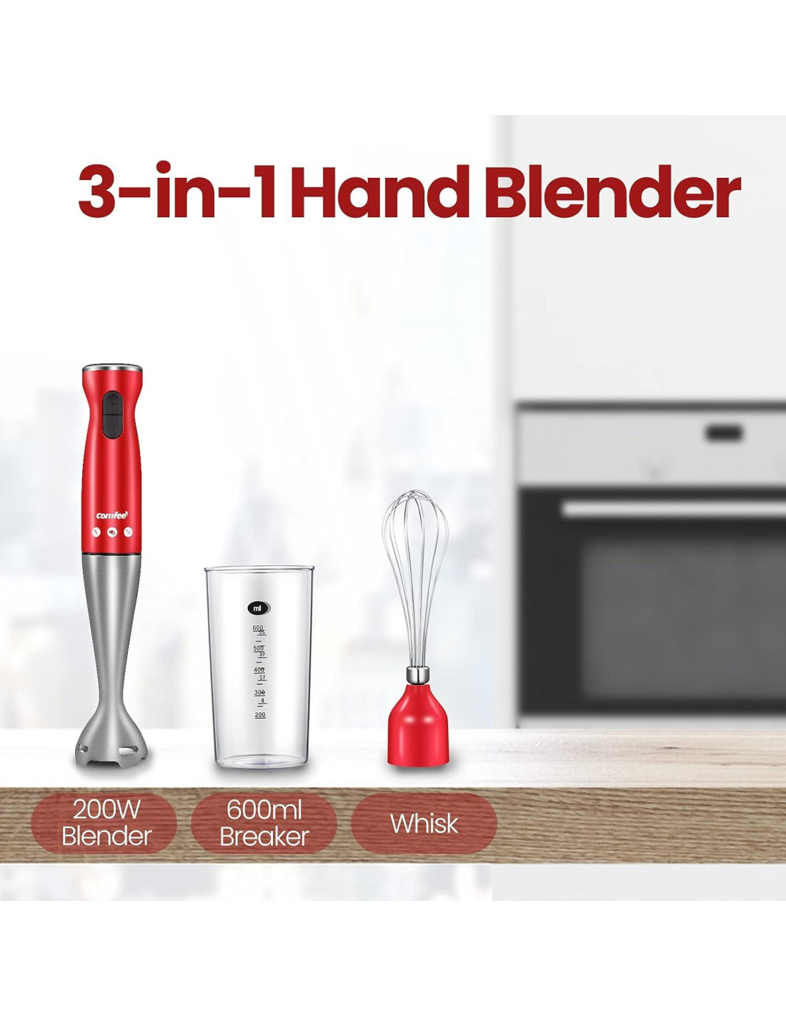 - Juego de Batidora Multifuncional 3 en 1 - Incluye eje de batidora, batidor y vaso. Perfecto para mezclar, moler, batir, emulsionar, hacer puré y mucho más. Esta batidora de mano se puede almacenar fácilmente cuando no está en uso.