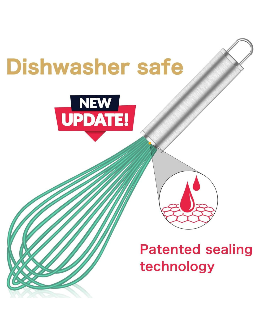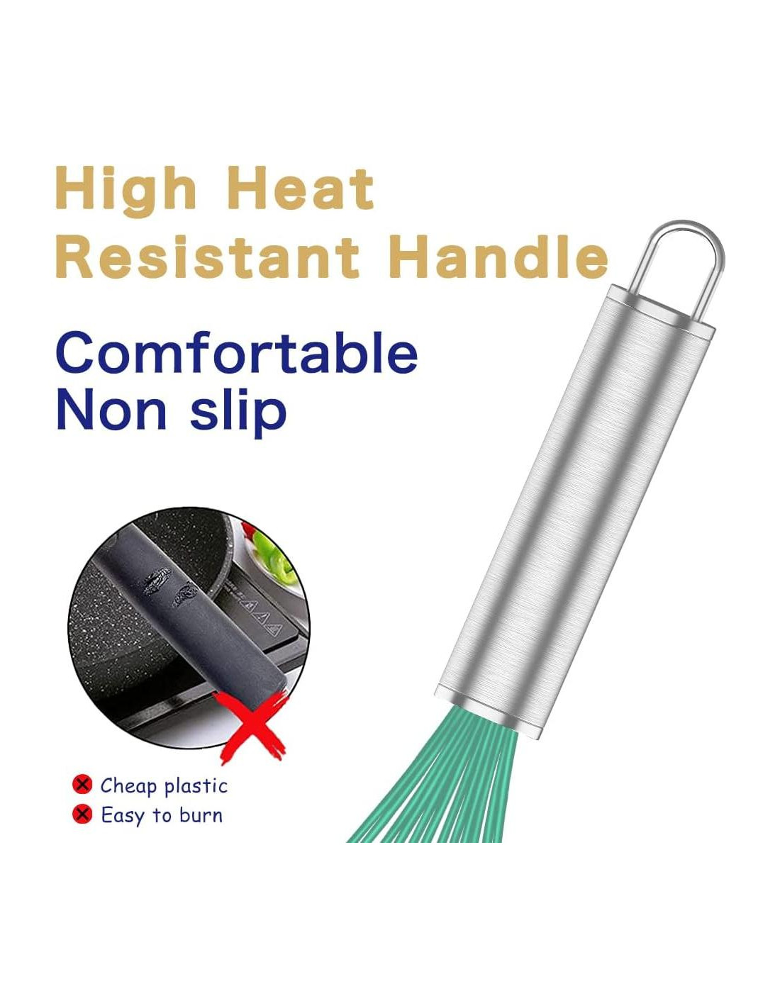 - BATIDOR DE SILICONA PROFESIONAL PARA COCINAR SIN RAYONES: Presenta un núcleo de acero inoxidable duradero de 1.75 mm recubierto con silicona premium de 0.4 mm. La superficie de silicona suave y flexible evita rayones o daños en ollas, sartenes o utensilios para hornear.