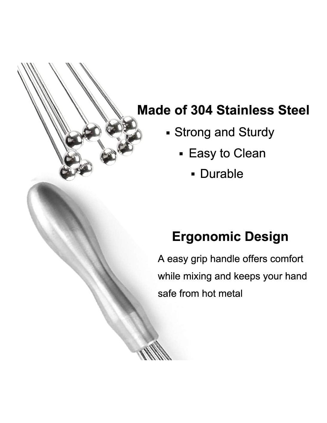 - 2. Diseño ergonómico: Un mango de fácil agarre ofrece comodidad al mezclar y mantiene su mano segura del metal caliente.
