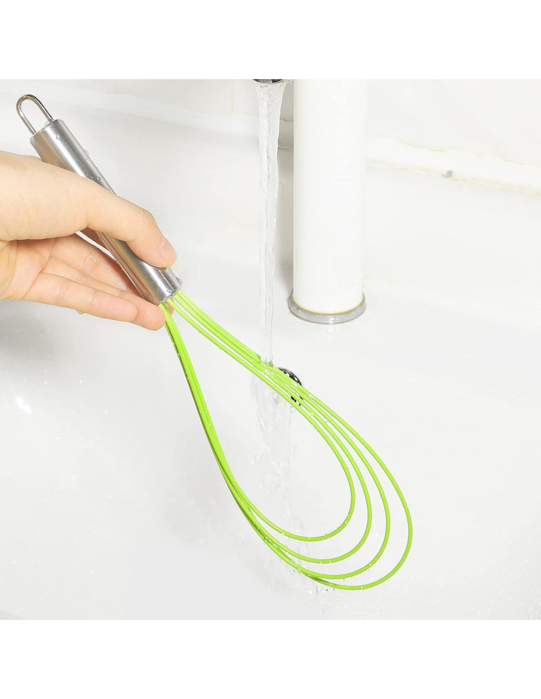 - RESISTENTE AL CALOR: Los alambres de silicona no dañarán ni rayarán ninguno de tus ollas, sartenes, tazones u otros platos mientras cocinas tus comidas favoritas. La temperatura de trabajo es de -40F (-40C) a 446F (230C).