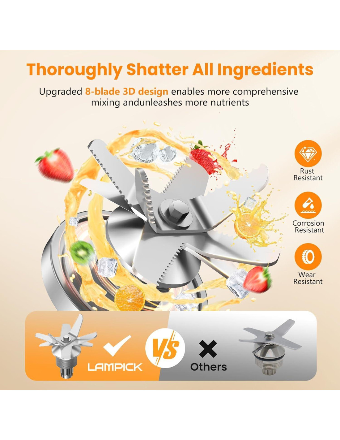 - Potente Trituración: Los mezcladores LAMPICK para cocina ofrecen potencia con su motor de 2000W (35,000 RPM), superando a la mayoría de los mezcladores en eficiencia de trituración de hielo, asegurando que tus batidos y bebidas congeladas estén perfectamente mezclados cada vez. Sus cuchillas de acero inoxidable de grado profesional pulverizan sin esfuerzo los cubos de hielo y las frutas congeladas en texturas suaves como la seda. El mezclador de alta velocidad cuenta con protección contra sobrecalentamiento incorporada para un funcionamiento más seguro.