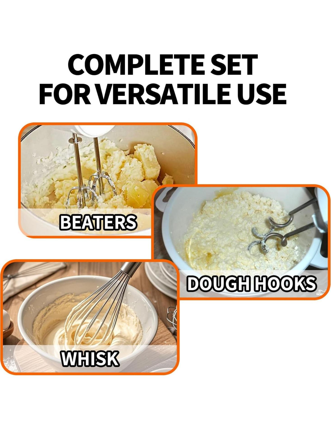 - Juego Completo de Accesorios - El juego incluye 2 batidores de mezclador, 2 ganchos para masa y 1 batidor, proporcionando todos los accesorios esenciales necesarios para una variedad de tareas de mezcla, desde hornear hasta la preparación de masa