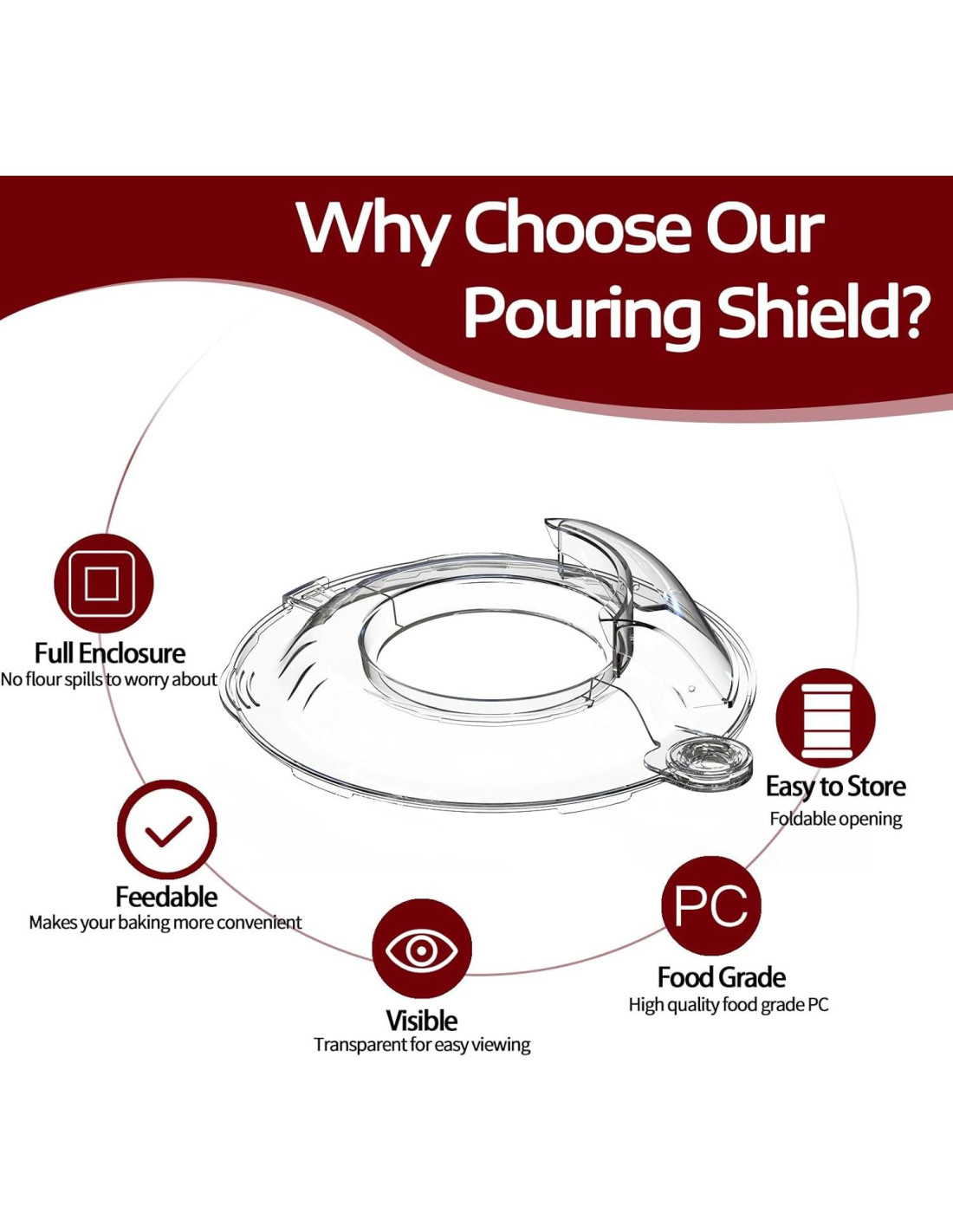 - Materiales de Grado Alimenticio El protector de vertido seguro para accesorios de batidora kitchen aid está fabricado con plástico PC de grado alimenticio, asegurando seguridad y durabilidad. El protector contra salpicaduras es resistente al calor, brindándote una experiencia de cocina fácil y conveniente.