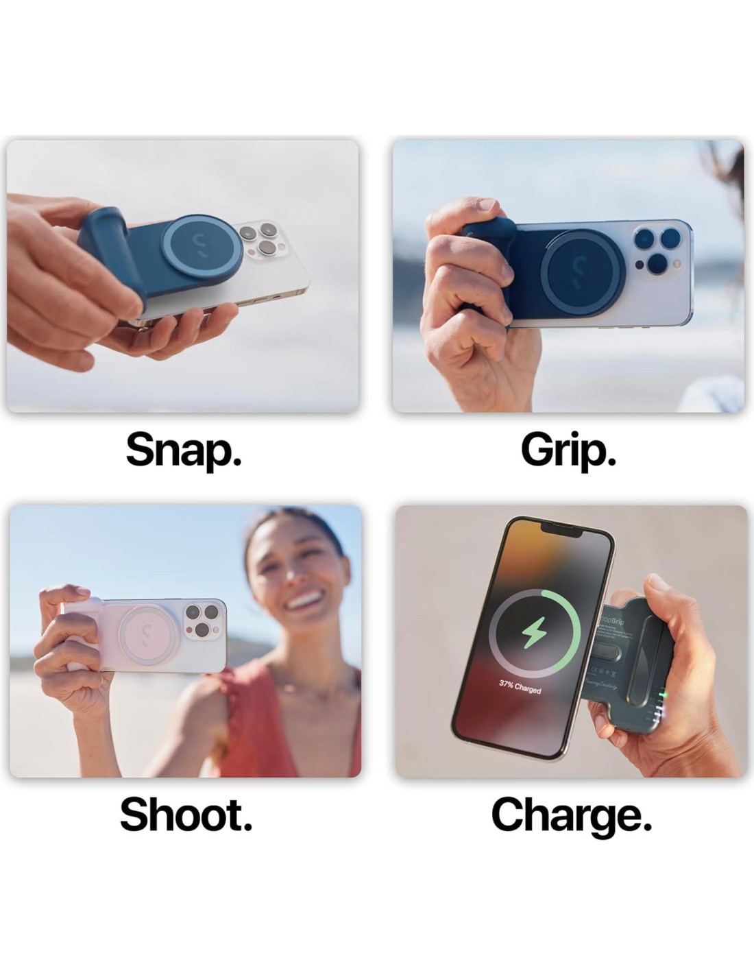 - Kit de Creador Completo: Desata tu creatividad con el Kit de Creador SnapGrip, ideal para narradores y creadores de contenido. Este paquete 3 en 1 incluye: SnapGrip - Un agarre de batería móvil magnético con botón de obturador inalámbrico; SnapPod - Un palo de selfie y trípode versátil; SnapLight - Una luz de anillo LED para selfies con cuatro configuraciones de brillo y un espejo incorporado.
