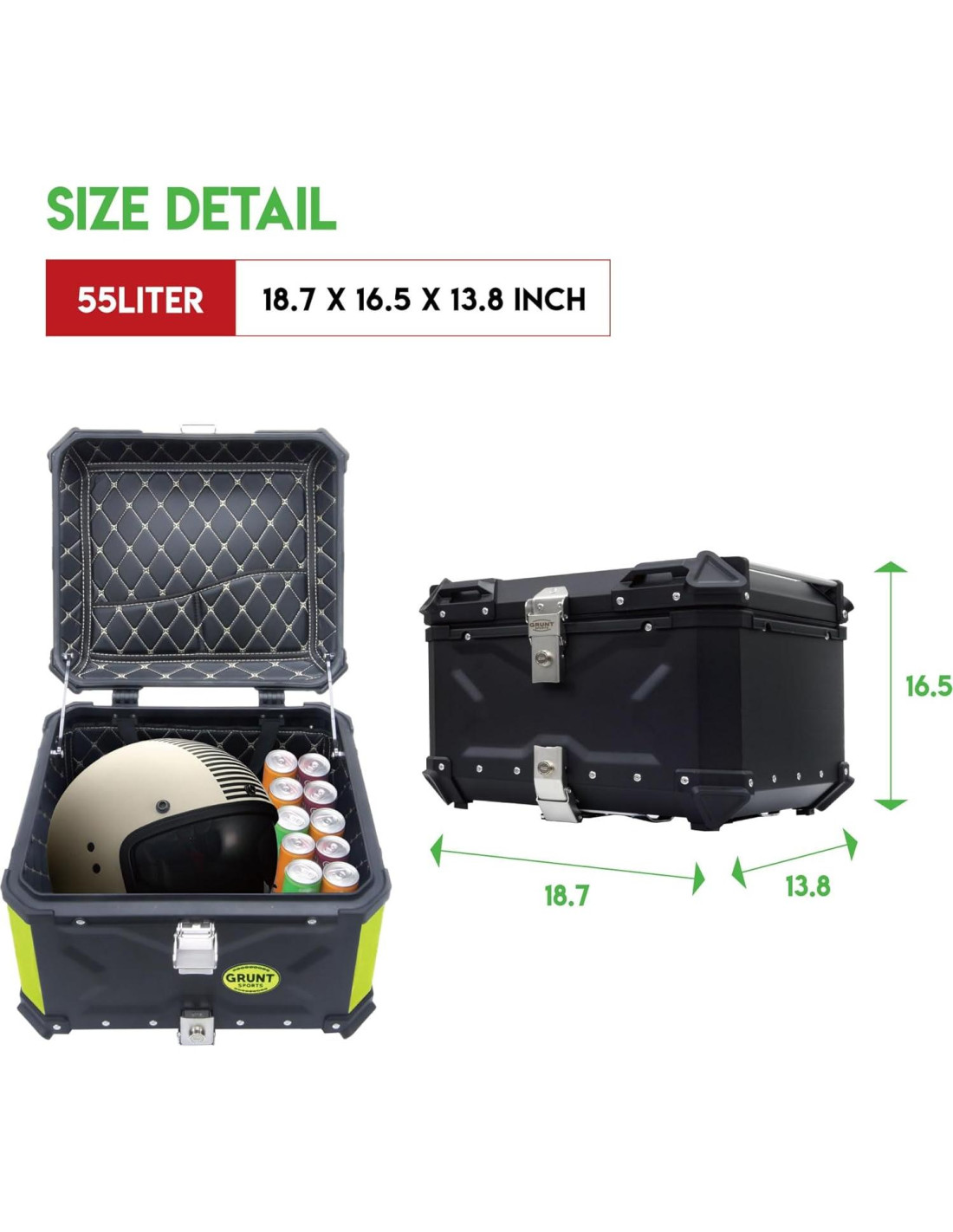 - MATERIAL Y DIMENSIONES DE CALIDAD - Nuestra caja de almacenamiento para motocicletas está hecha de una aleación de aluminio resistente, lo que la hace altamente duradera. 47.4 x 41.9 x 35.1 cm y Peso 7.26 kg