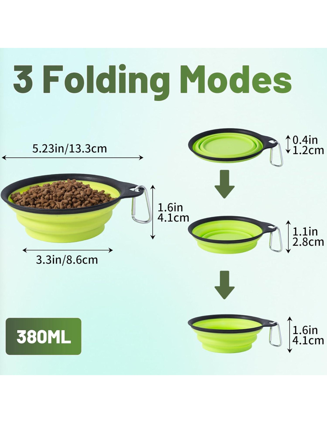 - USO VERSÁTIL: 5.2(L)*3.3(Fondo)*1.6(Altura) pulgadas (expandido), 0.4 pulgadas de altura (plegado), cada cuenco sostiene hasta 13oz/380ml de agua, viene con 2 cuencos, perfecto para comida y agua, adecuado para perros/gatos pequeños a medianos durante caminatas, viajes de camping o actividades al aire libre.