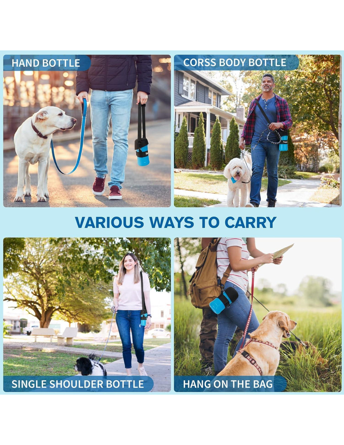 - [LIGERO Y PORTÁTIL] La nueva botella de agua para perros viene con correas para el hombro y correas de mano que se pueden usar como opción de mano o cruzada, adaptándose a tus diferentes necesidades. También viene con un mosquetón extra que se puede adjuntar donde lo necesites.