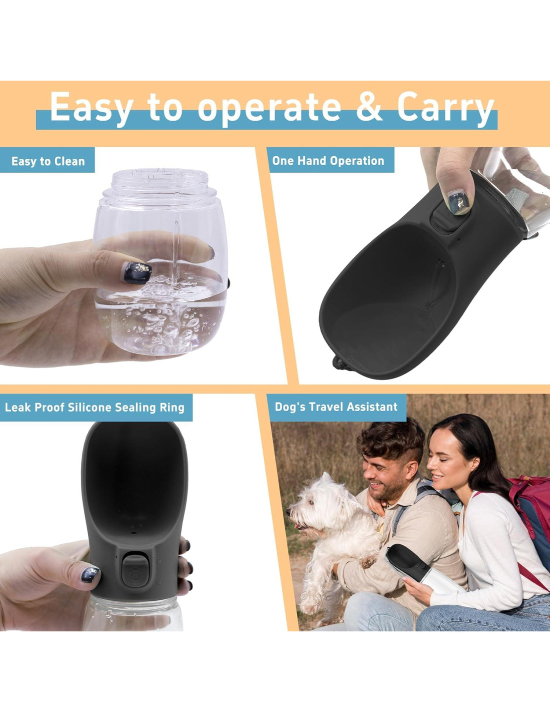 - Múltiples Colores y Tamaños: Hay múltiples colores y tres tamaños (340ml, 550ml, 800ml), suficiente capacidad para adaptarse a todas las razas de perros, el diseño portátil hace que este dispensador de botella de agua para perros sea muy ligero y fácil de llevar, puedes ponerlo en tu bolsa o usar una banda de muñeca para llevarlo.