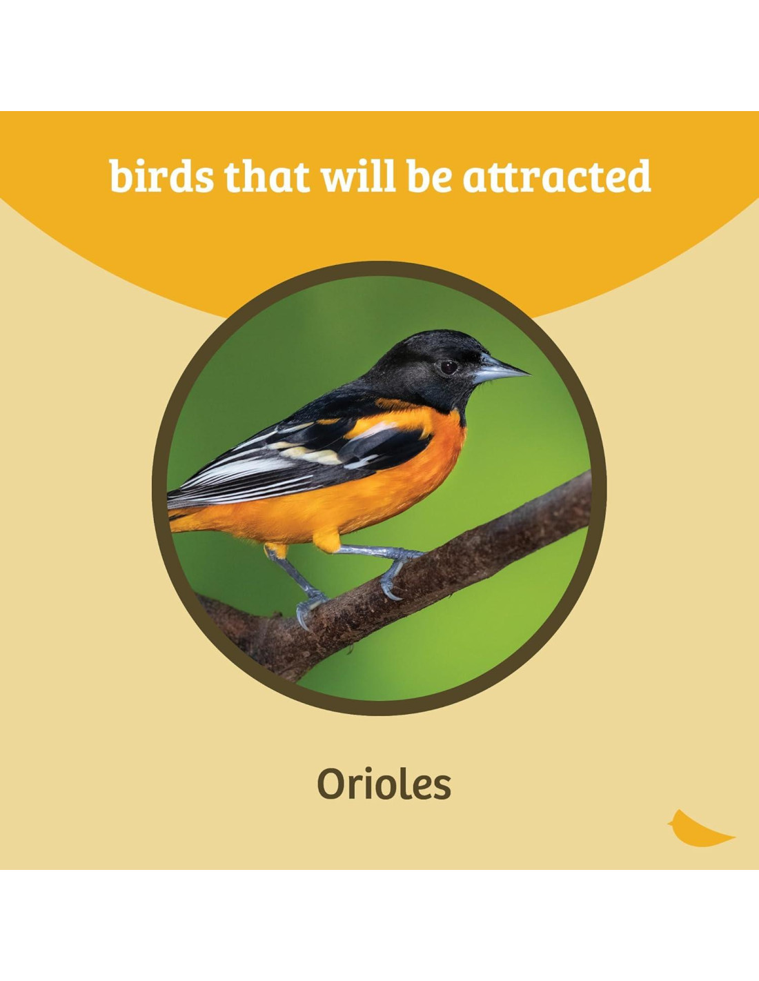 - Estación de Alimentación para Orioles Todo en Uno - Este comedero para oriole te permite servir naranjas, gelatina y néctar en un solo conjunto conveniente. El diseño naranja brillante atrae a los orioles, mientras que la capacidad de 12 oz (340 g) de néctar, las bandejas para gelatina y el soporte para naranjas proporcionan múltiples opciones de alimentación.