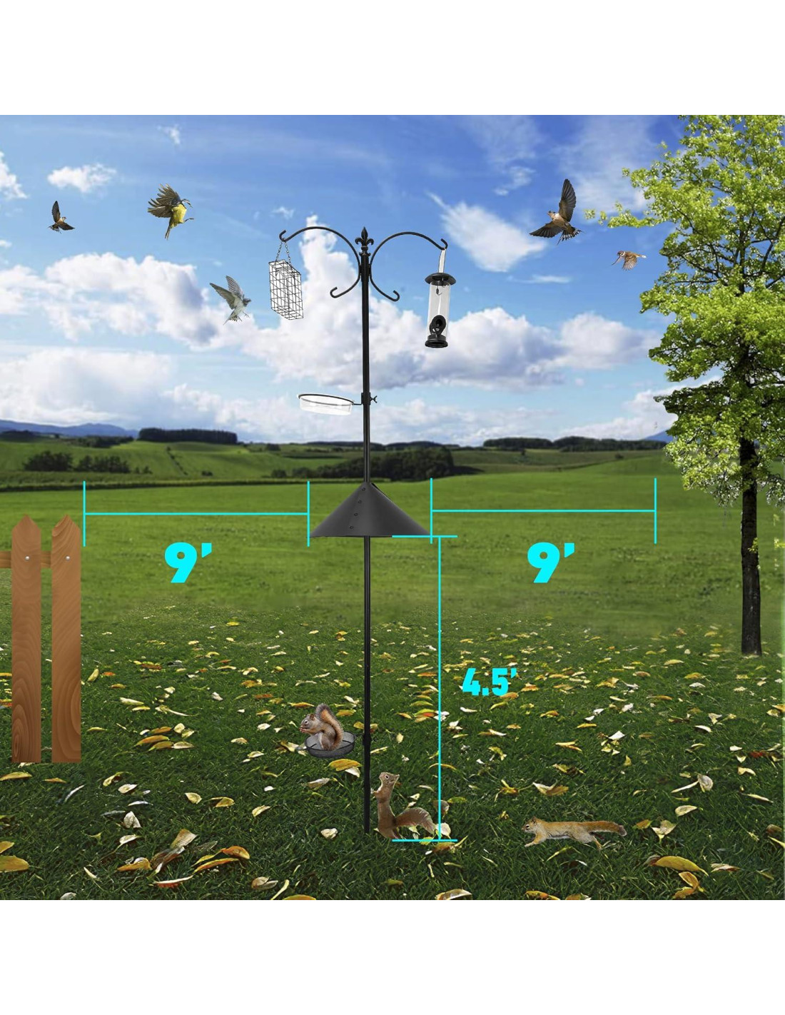 ¿Cansado de que las ardillas se coman toda tu comida para aves? Finalmente, un sistema de comedero para aves que beneficia a las aves y a las ardillas al mismo tiempo. Nuestro diseño pendiente de patente permite que las aves coman de los 4 comederos para aves en la parte superior del poste, mientras que la comida para aves está protegida por el baffle para ardillas incluido. Debajo del baffle para ardillas se encuentra la bandeja de comida para ardillas de la que pueden comer. Quién sabe, este producto podría ser el inicio de la paz mundial. Nuestro diseño único está bajo revisión de patente. En lugar de comprar un poste para comedero de aves y luego un baffle para ardillas por separado a un gran costo, nuestro diseño único incluye todo lo que necesitas para alimentar a las aves, proteger tu comida para aves y mantener a las ardillas saludables al mismo tiempo. Nuestro comedero para aves atrae todo tipo de aves silvestres dependiendo de tu ubicación en el país. Este diseño de comedero para aves fue desarrollado por nuestros ingenieros para ser fuerte, fácil y resolver el problema más común de las ardillas comiendo toda la comida para aves. Las ardillas pueden saltar entre 4 a 4.5 pies (1.22 a 1.37 metros) verticalmente, por lo que el baffle para ardillas debe estar a un mínimo de 4.5 pies (1.37 metros) del suelo para proteger el comedero para aves. Las ardillas también pueden volar por el aire, por lo que el sistema de comedero para aves necesita estar montado a 10 pies (3.05 metros) de grandes árboles, techos, cercas u otros objetos desde los cuales las ardillas pueden saltar hasta la parte superior del comedero para aves y robar toda la comida para aves. Estamos seguros de que estarás satisfecho con nuestra estación de comedero para aves. Si no estás satisfecho, simplemente devuélvelo dentro de los 30 días para un reembolso completo. ¡Pruébalo, sabemos que te gustará!