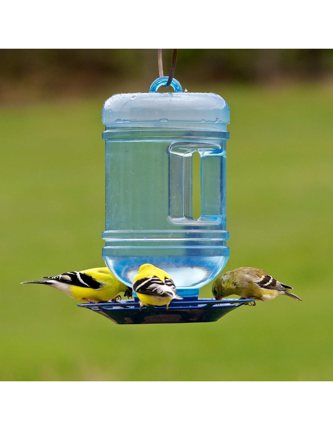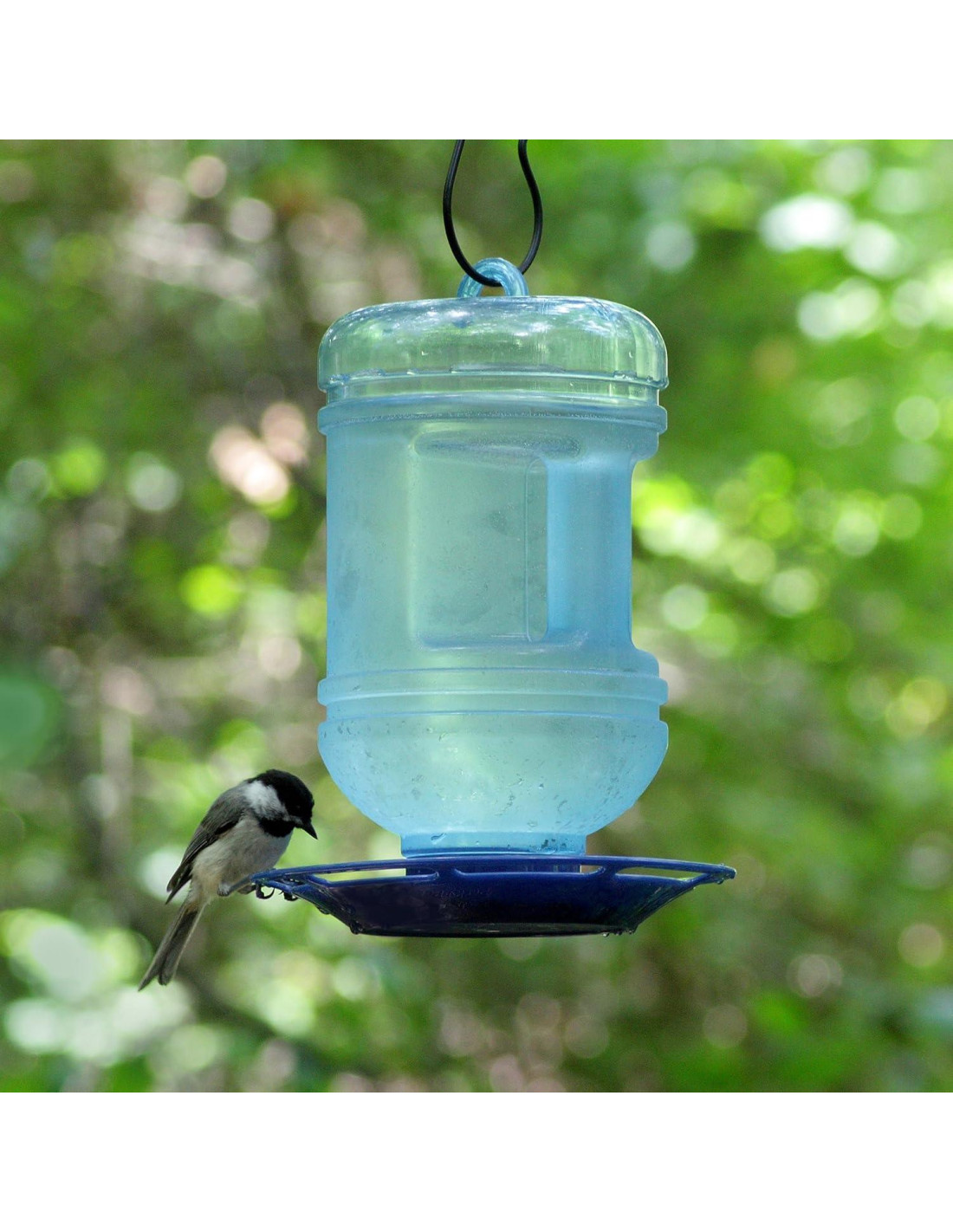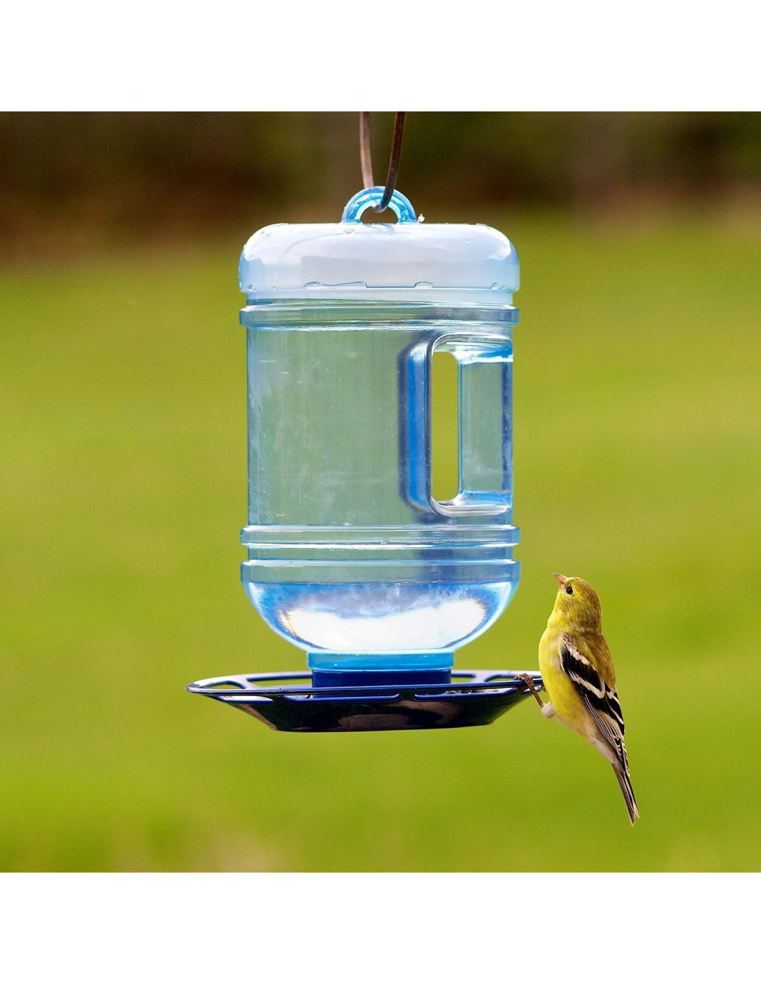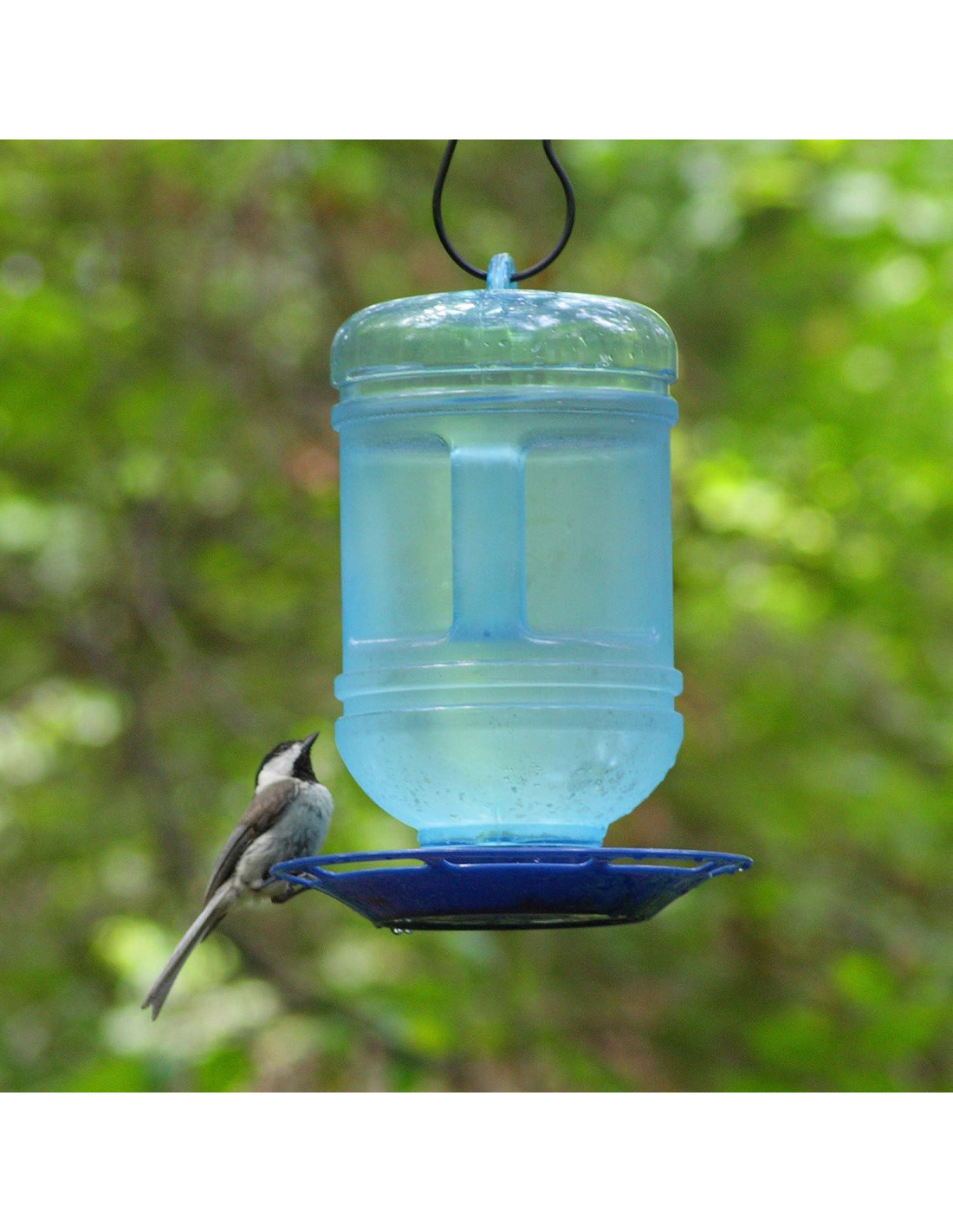 El Enfriador de Agua Perky-Pet proporciona 1.5 qt (1.42 L) de agua fresca para tus aves sedientas del patio trasero. La forma única de enfriador de agua permite que tus aves tengan su propio tipo de enfriador de agua para reunirse. La mano ergonómica en la botella del Enfriador de Agua permite un fácil llenado y transporte. El agua es un elemento esencial para atraer aves. Al agregar agua a tu oferta junto con una fuente de alimento, atraerás una mayor variedad de aves, incluyendo aves que no comen semillas, como el popular mirlo azul, la golondrina y el warbler. Las aves buscarán una fuente de agua de diversas maneras: ríos, arroyos, estanques, charcos e incluso gotas de lluvia. Proporciónales agua fresca y limpia en tu patio trasero y puede que nunca tengan que ir a otro lugar. Mantén el agua fresca cambiándola cada pocos días. Limpia el bebedero cada dos semanas con una solución de jabón suave y agua. Asegúrate de enjuagar bien.