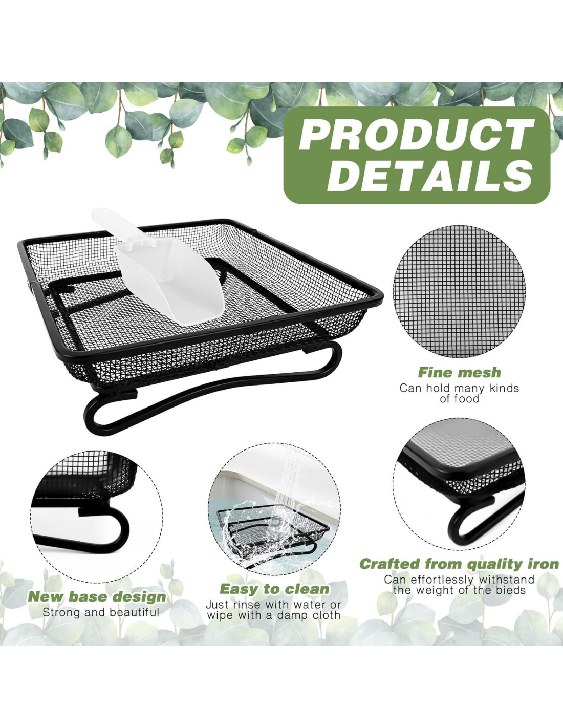 - Construcción Robusta: Fabricadas con hierro de calidad, estas bandejas para comederos de aves ofrecen una gran resistencia y durabilidad, soportando sin esfuerzo el peso de las aves. El recubrimiento anti-óxido asegura un uso a largo plazo sin óxido ni desgaste, mientras que el diseño de doble soporte metálico proporciona equilibrio y estabilidad para mantener la bandeja en posición vertical durante las sesiones de alimentación.