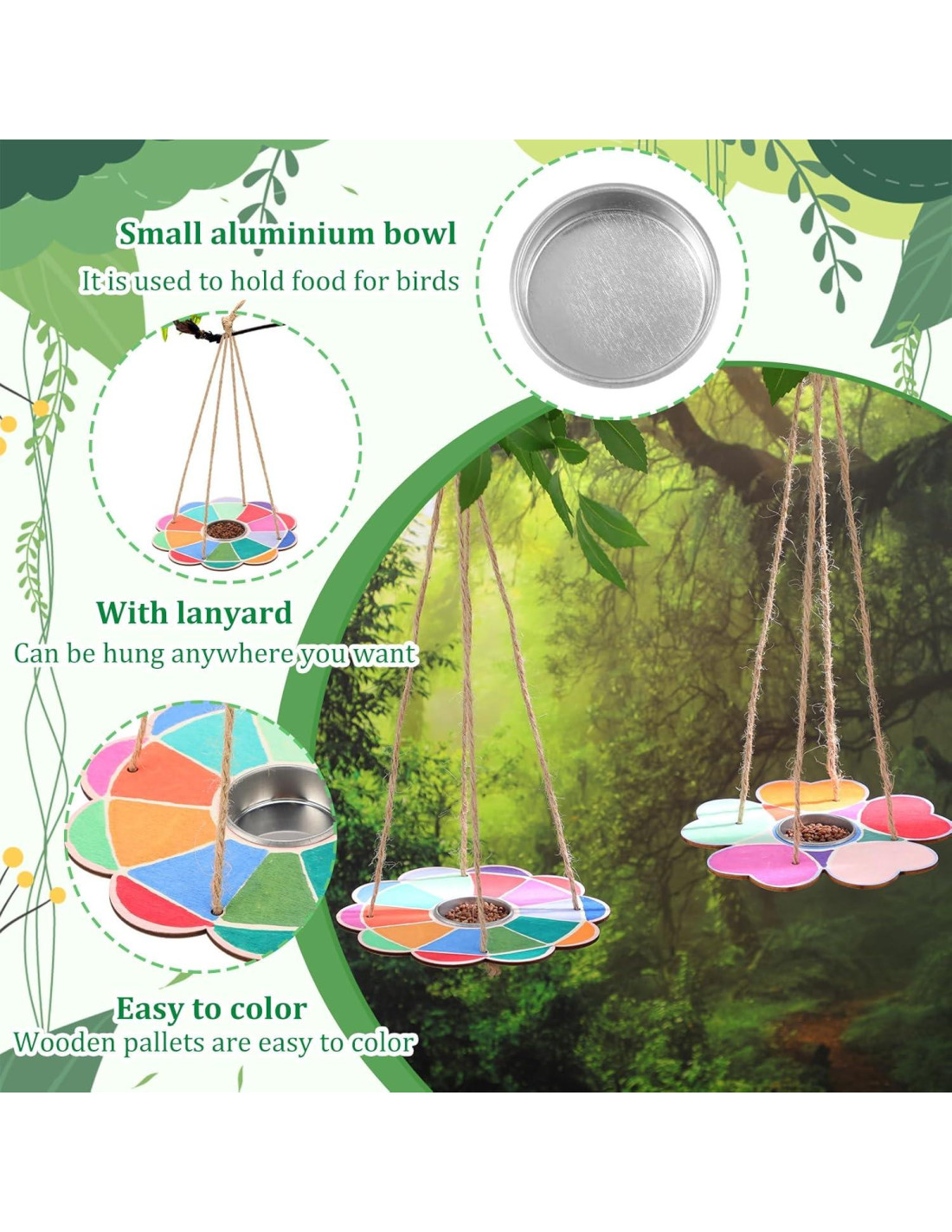 - Ilumina Tu Espacio con Estas Adorables Creaciones: estos alimentadores de aves no solo son divertidos de hacer, ¡sino que también son divertidos de exhibir! Independientemente de si se cuelga en interiores o exteriores, este kit de alimentador de aves DIY para niños añade un toque encantador a tu espacio; Su color natural de madera puede combinarse perfectamente con cualquier decoración, convirtiéndolo en la pieza ideal para entretenimiento al aire libre