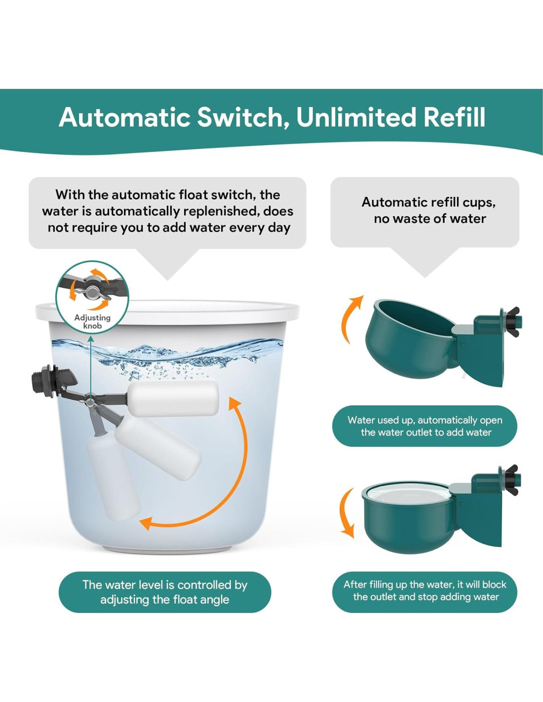 - Sistema Automático de Bebedero para Pollos Todo en Uno - Nuestro sistema de bebederos automáticos para pollos cuenta con un diseño avanzado de gravedad y un interruptor de flotador para el control automático del nivel de agua, previniendo efectivamente el desbordamiento. No es necesario rellenar manualmente, liberando tus manos. Nuestro dispensador de agua para pollos se puede personalizar para satisfacer diversas necesidades en diferentes gallineros, asegurando un suministro confiable de agua. Ya sea que estés de viaje largo o ocupado con el trabajo, tus pollos siempre tendrán acceso a agua limpia.