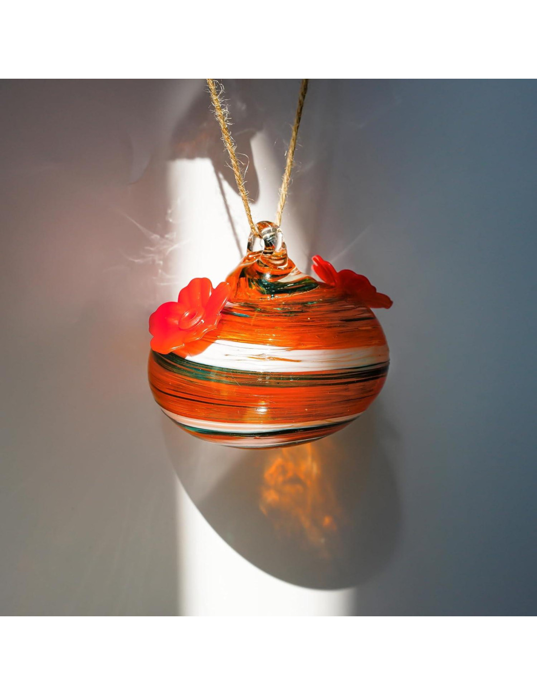 - Alimentador de colibríes de vidrio soplado a mano: Este pequeño alimentador de colibríes colorido está hecho de vidrio de alta calidad, cada alimentador de colibríes está soplado a mano por nuestros talentosos artesanos y viene con un gancho y cuerda para una fácil suspensión.