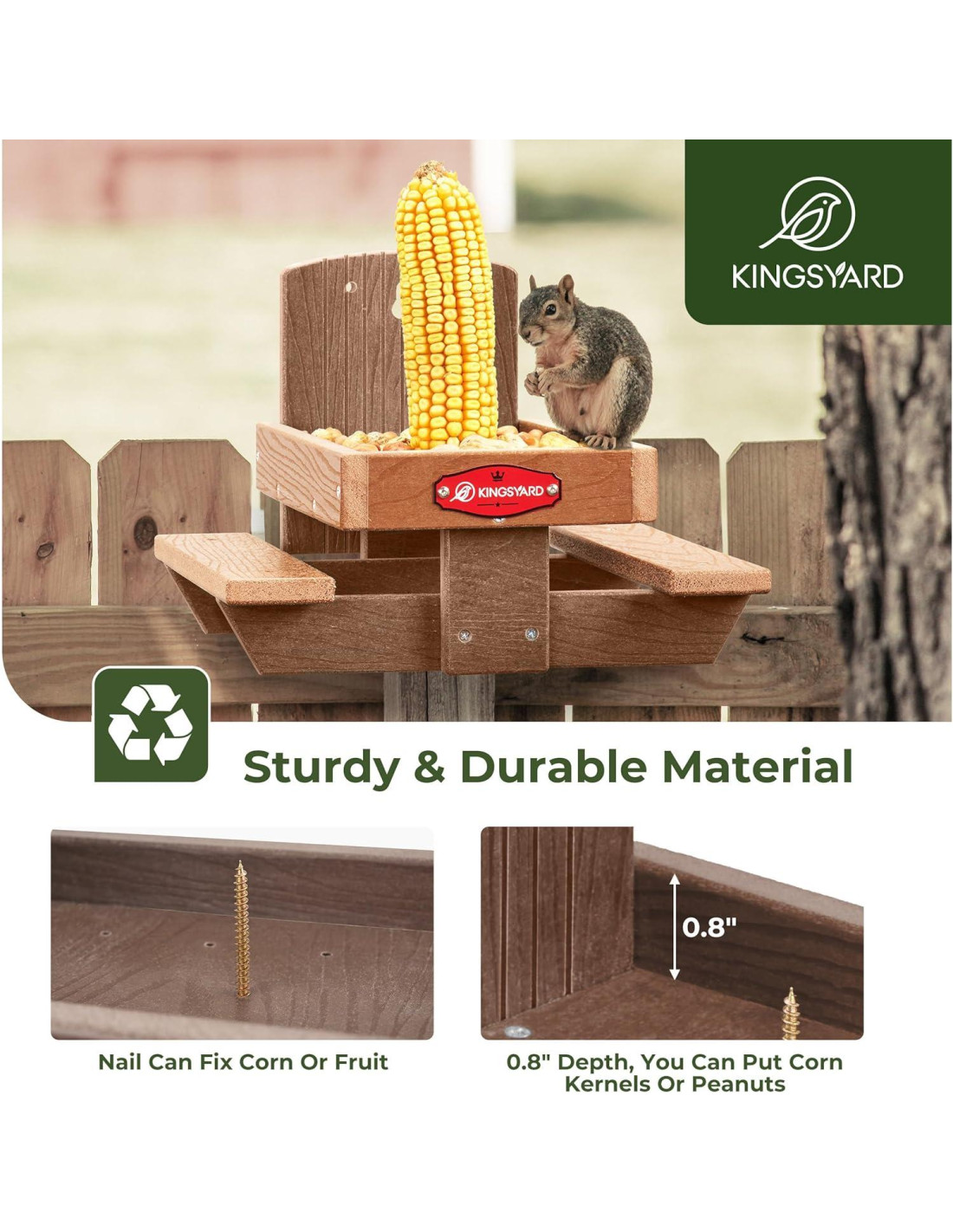 - [FÁCIL DE INSTALAR] Simplemente móntalo en un árbol, cerca o poste y agrega comida para ardillas: mazorcas de maíz, cacahuetes, nueces, etc. Luego, verás a todas las divertidas ardillas y ardillas listadas correr de un lado a otro hacia tu linda mesa de picnic para ardillas.