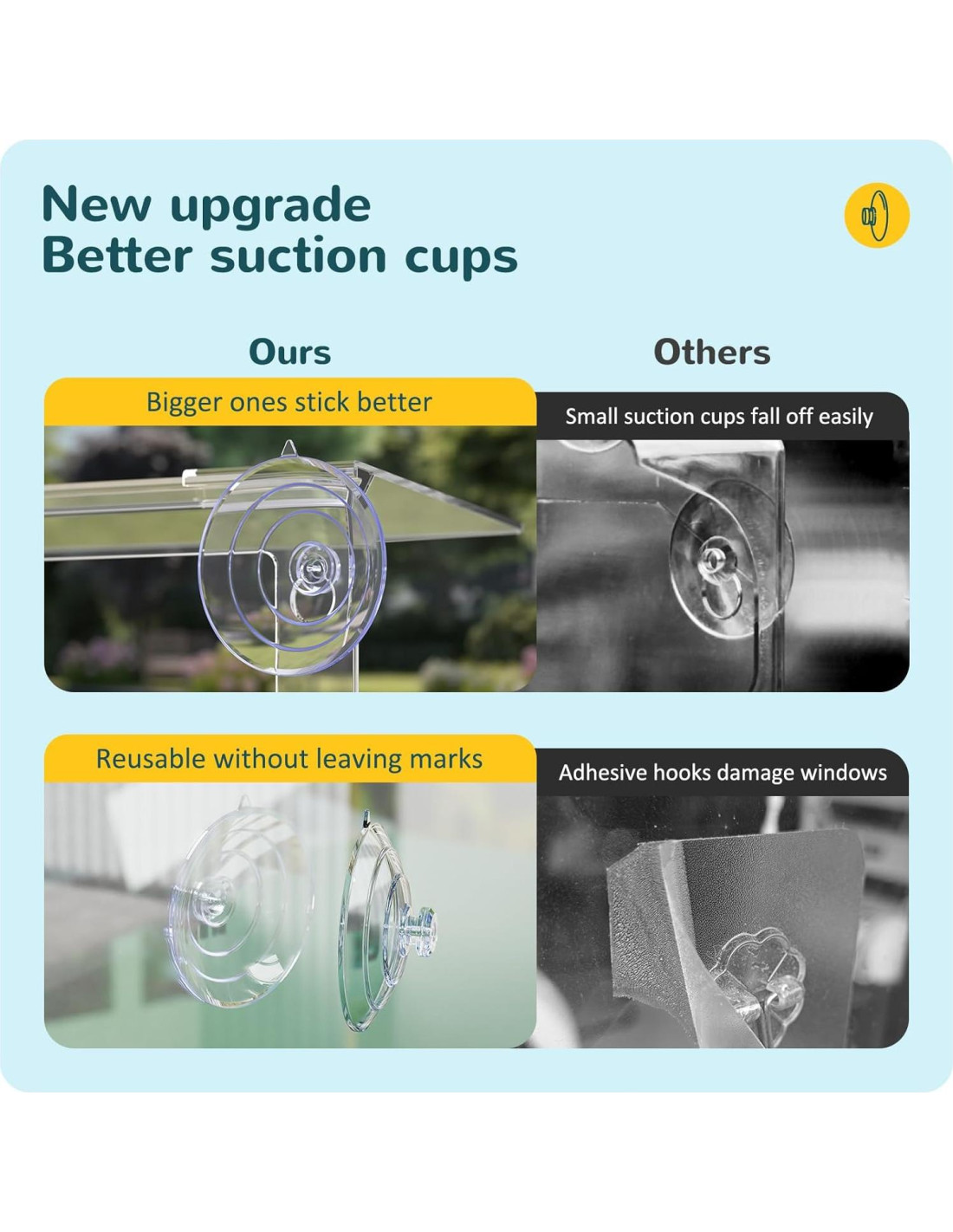 - DURADERO Y RESISTENTE A LAS INCLEMIENCIAS: Equipado con cuatro fuertes ventosas, nuestro comedero para aves se mantiene estable incluso en condiciones climáticas extremas. Móntalo alto sin miedo a que se caiga, permitiendo la observación de aves mientras se disuaden plagas como ratones y ardillas