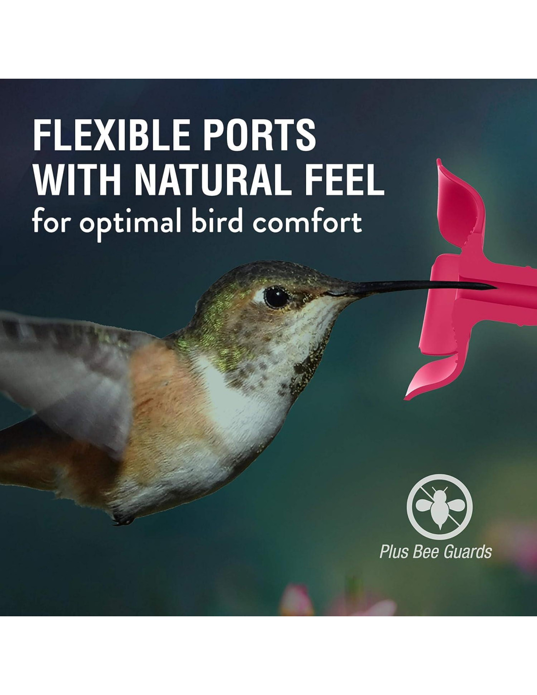 - Todo el alimentador se desarma para una fácil limpieza y sostiene hasta 28 oz (0,83 L) de néctar