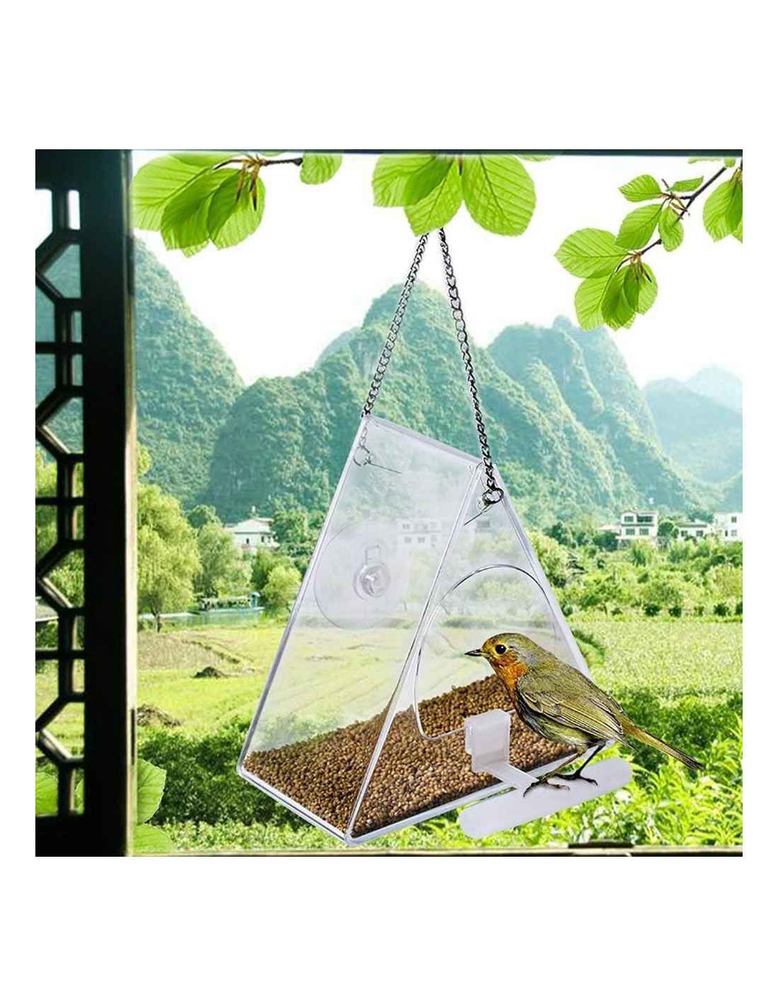 - Comedero de Aves Colgante o de Ventana: El comedero incluye una fuerte ventosa y una cadena colgante, adecuado para ventanas o colgado al aire libre, ideal para pequeñas aves silvestres