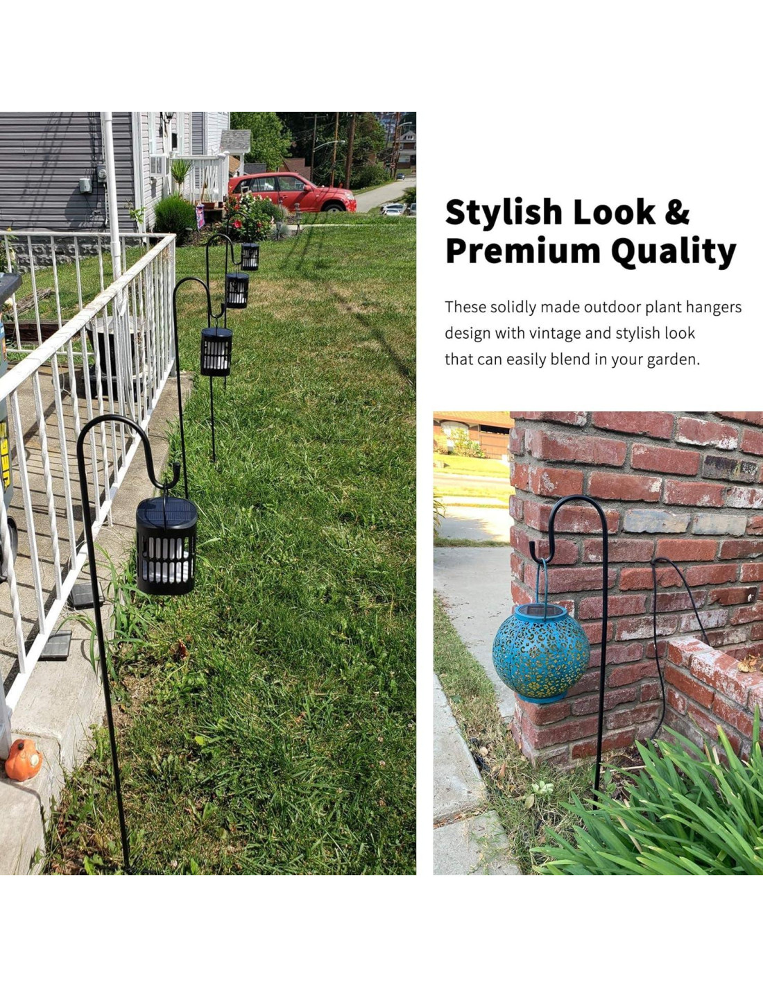 - Aspecto Elegante y Calidad Premium. Estos colgadores de plantas al aire libre, sólidamente fabricados, tienen un diseño vintage y elegante que puede integrarse fácilmente en su jardín. Están hechos de acero de alta calidad con un recubrimiento de polvo negro suave, que es resistente a la oxidación y robusto para una larga vida útil.