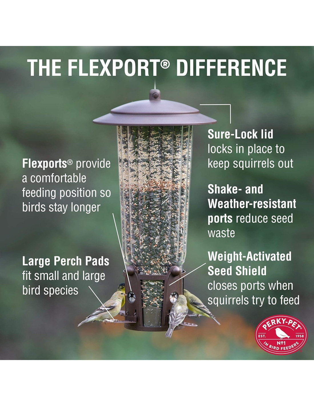 - 4 veces Menos Pérdida de Semillas - Los Flexports están diseñados para ser más resistentes a las inclemencias del tiempo y al movimiento de las ardillas, lo que significa dinero ahorrado y menos desorden en el suelo