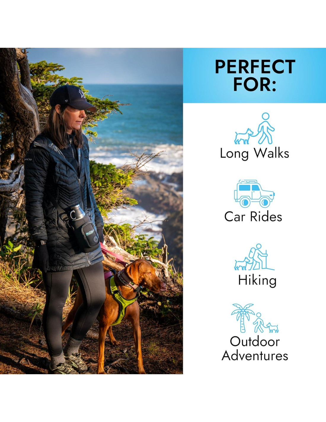 - PORTABILIDAD FÁCIL CON UNA PRÁCTICA BOLSA DE NEOPRENO - Con su bolsa de neopreno incluida, este conjunto de tazón de comida y agua para perros con tazones para cachorros ofrece la máxima portabilidad. La correa ajustable te permite llevar la botella sin usar las manos. Ya sea que vayas de excursión, al parque o de viaje, esta ligera botella de agua para perros portátil hace que mantenerse hidratado sea fácil. La bolsa de neopreno protege la botella y el compartimento con cremallera sostiene bolsas para perros, tu teléfono, billetera y llaves.