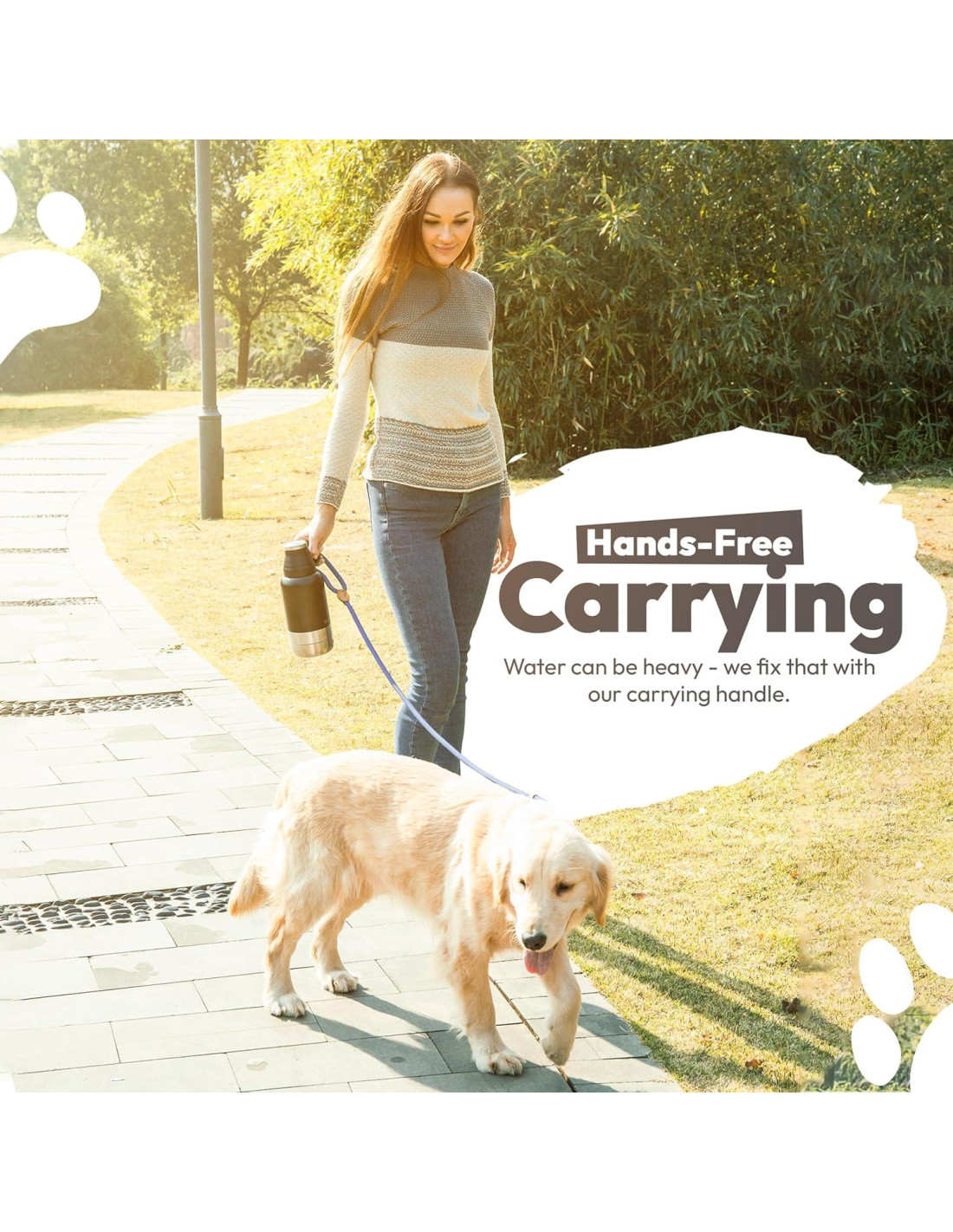 - PORTÁTIL Y VERSÁTIL Nuestra botella de agua de viaje para perros de acero inoxidable tiene una gran capacidad de almacenamiento para mantener a tu leal compañero feliz, hidratado y lleno de energía. Los dos cuencos desmontables aseguran una alimentación segura e higiénica durante actividades al aire libre. La ligera y compacta botella de agua de acero inoxidable está diseñada para un fácil transporte con un cierre seguro y sellos herméticos. Ideal para viajes por carretera, jogging, senderismo, salidas a la playa o paseos.