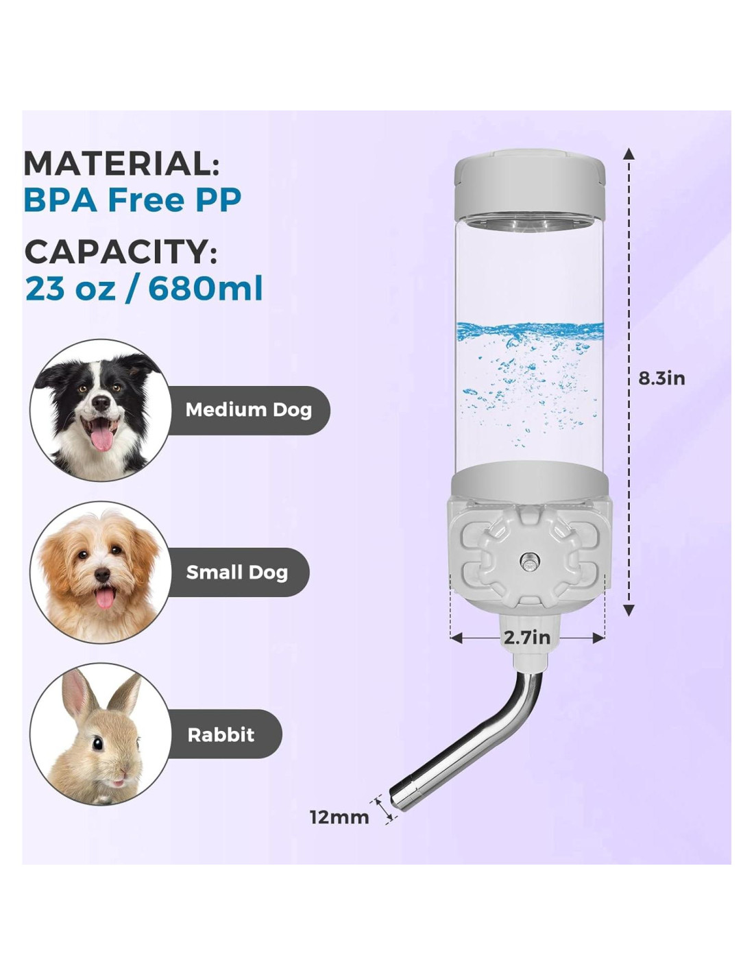 - [Dispensador de Agua para Jaula] Capacidad de 23 oz (680ml), diámetro de boquilla: 12mm. Este dispensador de agua está hecho de plástico libre de BPA, ideal para perros, gatos y conejos.