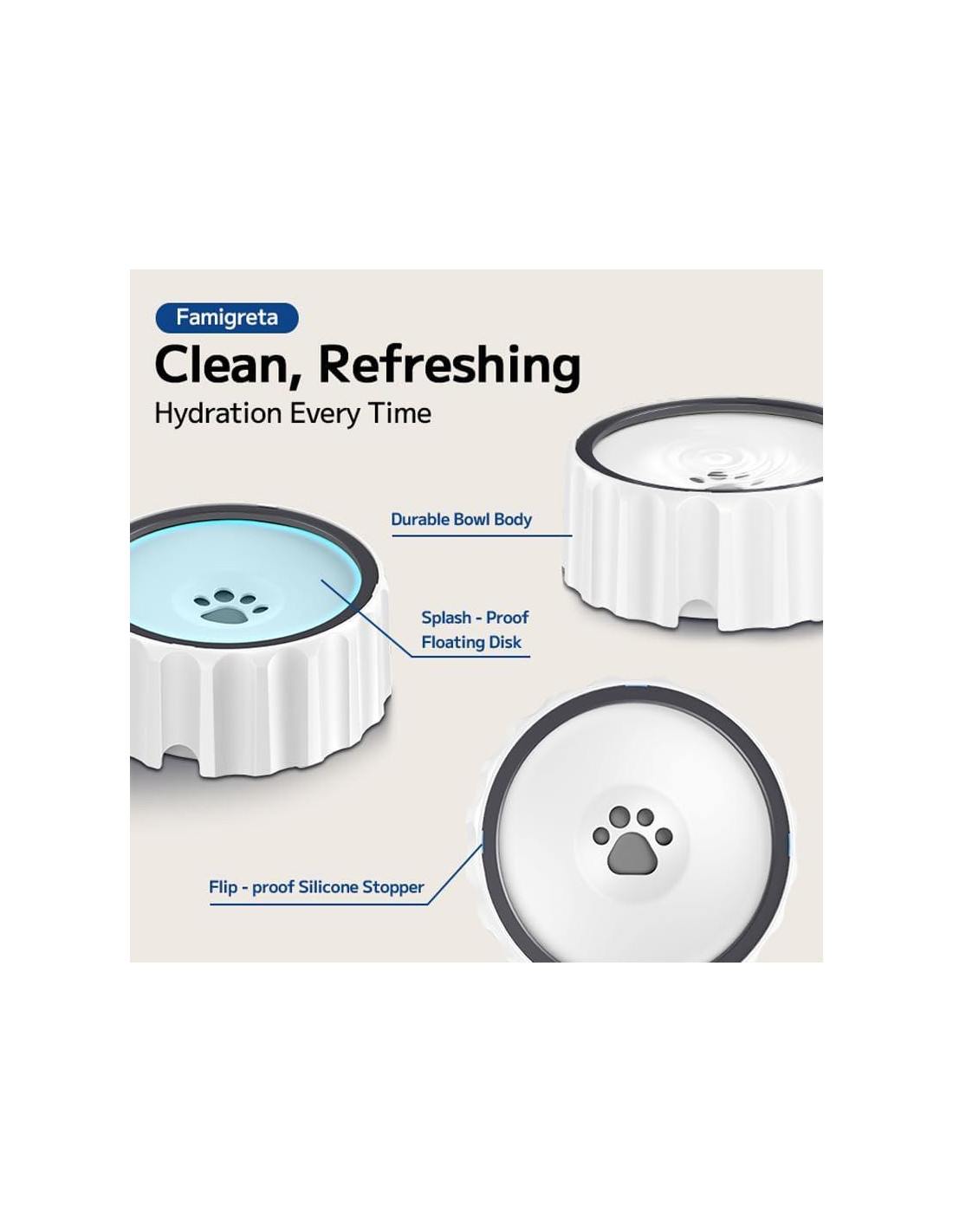 - Diseño Innovador de Disco Flotante: Mantiene el pelaje de la mascota seco. El disco flotante controla el flujo de agua, previniendo salpicaduras excesivas y manteniendo el pelaje de la boca de tu mascota seco y limpio. No más pelaje mojado y desordenado, solo una experiencia de bebida más cómoda.