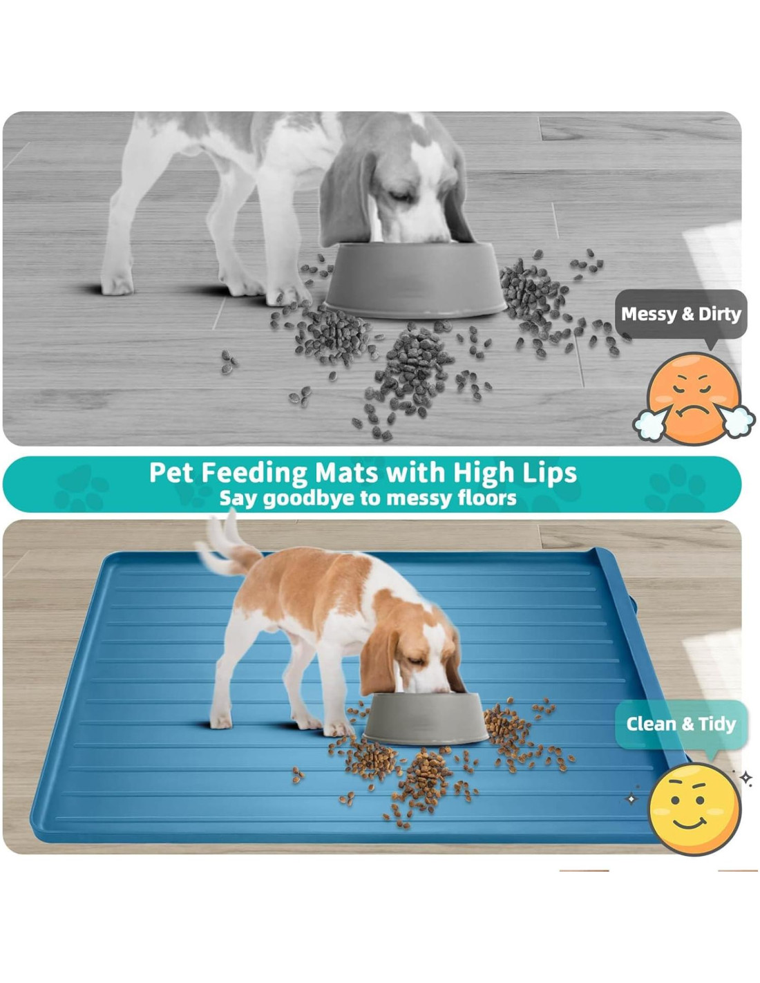 - IMPERMEABLE Y FÁCIL DE ALMACENAR: Nuestra alfombrilla para comida de perro está hecha de material de silicona de alta calidad que es 100% impermeable, y se seca fácilmente con un trapo húmedo o se enjuaga con agua. También no deja marcas de agua después de secarse. Las alfombrillas de silicona para comida de perro son suaves, flexibles y se pueden doblar o enrollar para ahorrar espacio. El diseño de gancho permite colgarla fácilmente para secar después de lavarla, manteniendo la alfombrilla limpia y seca en todo momento.