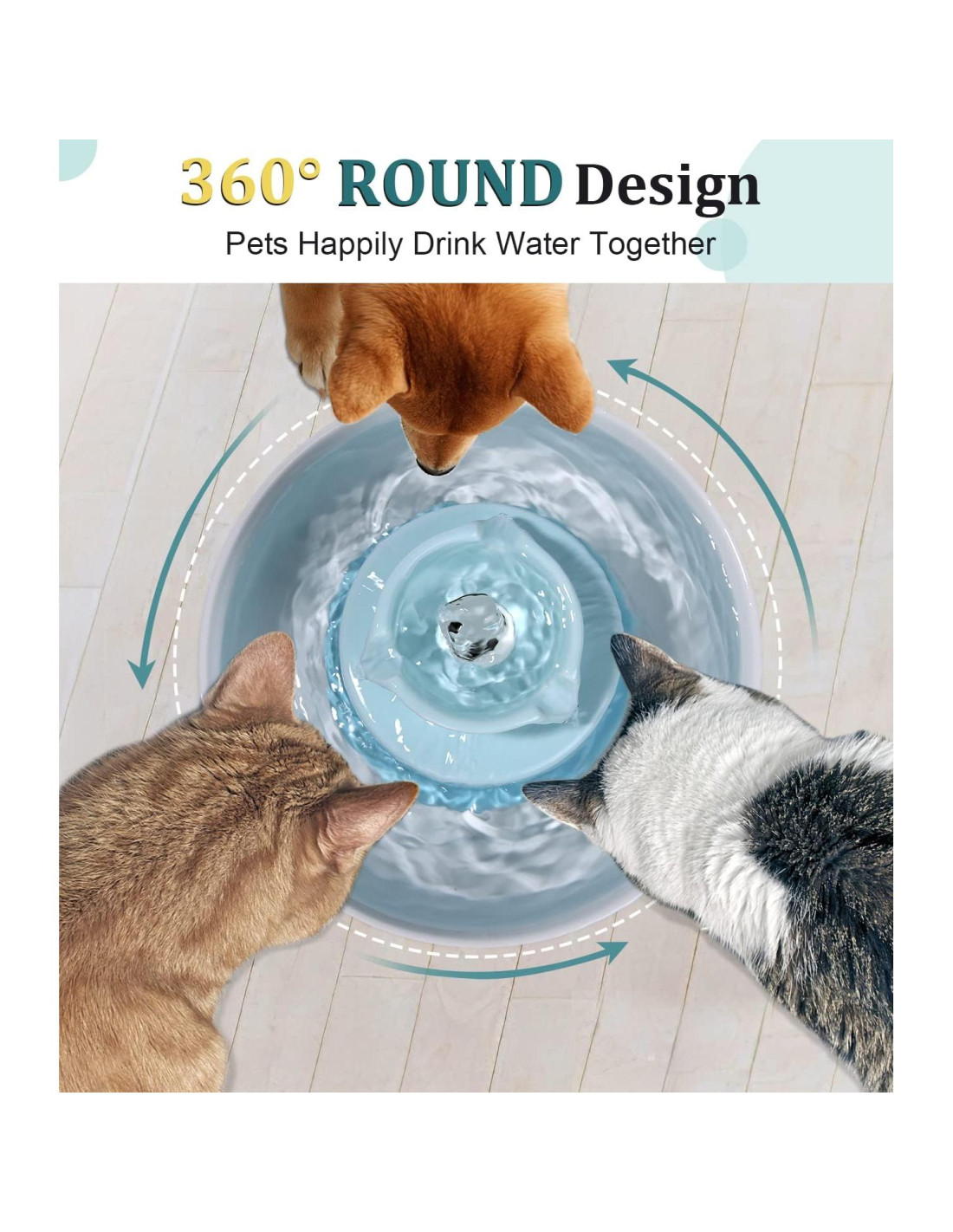 - EXTREMADAMENTE SILENCIOSA: La fuente de agua es muy silenciosa, la última generación de la bomba utiliza una tecnología de motor única, super silenciosa (menos de 40 decibelios).