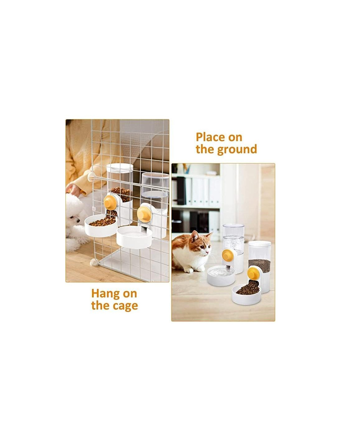 El dispensador de agua automático puede contener 1L de agua y 850g de comida, para evitar la adición frecuente de agua y comida. La boca del tazón de comida y agua tiene un diámetro de 4.7 pulgadas (11.9 cm), lo que es ideal para animales pequeños y medianos, como conejos, chinchillas, cobayas, erizos y hurones. NOTA: 1. Solo agregar comida seca al tanque de almacenamiento de comida. 2. El paquete incluye dos artículos, Alimentador*1, Dispensador de agua*1. 3. Ideal para animales pequeños y medianos, como gatos, perros, conejos, chinchillas, erizos y hurones.