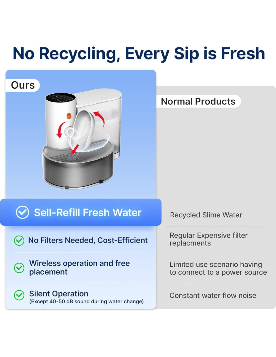 - Diseño Revolucionario de Auto-Relleno - ¡Mantén a tu gato y mascota hidratados con agua fresca y limpia cada vez! Esta fuente de agua automática descarta el agua estancada y repone el tazón solo con agua fresca, asegurando que tus mascotas disfruten de una bebida higiénica y refrescante, ideal para gatos, gatitos y todas las mascotas pequeñas.