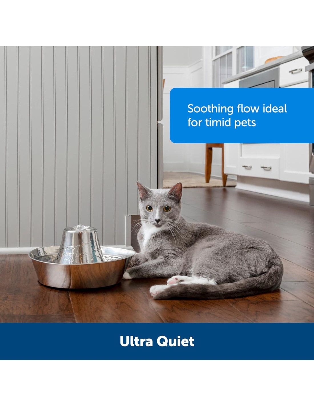 La Fuente de Agua para Mascotas PetSafe Seaside está diseñada para durar. Construida con acero inoxidable de alta calidad, esta fuente de agua para mascotas de acero inoxidable resiste abolladuras y golpes, asegurando durabilidad y longevidad. Tiene una capacidad de agua de 60 oz (1.8L) y ofrece hidratación desde todos los ángulos gracias a su diseño de 360 grados. El sistema de filtración avanzado proporciona agua fresca mientras extiende la vida útil del producto. El filtro contiene 2.5 veces más carbón activado que las marcas genéricas, eliminando eficazmente el pelo de mascotas y los desechos. Confía en PetSafe, respaldado por un servicio al cliente basado en EE. UU. y una promesa de calidad. PetSafe es un líder global en comportamiento de mascotas, contención e innovaciones en estilo de vida desde 1998, manteniendo a tu mascota saludable, segura y feliz.