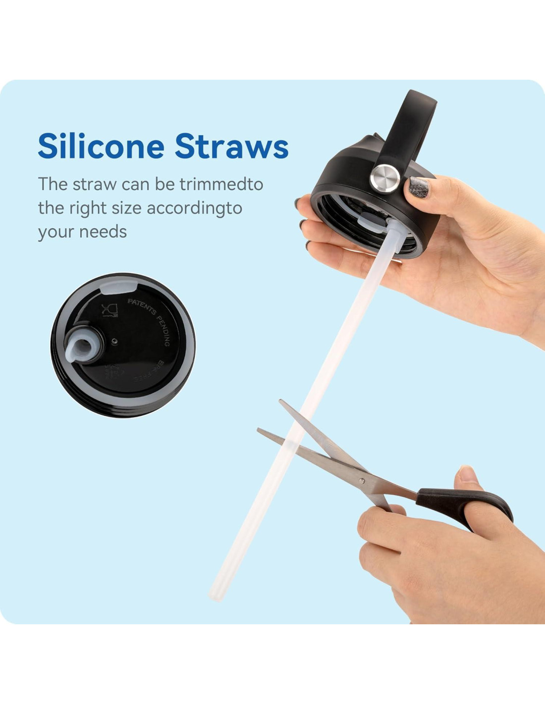 - Fácil de usar: Mango resistente y suave de agarre ancho es fácil de llevar y cuenta con operación con una sola mano para una hidratación fácil en cualquier momento y lugar. El anillo de sellado de silicona es fácil de desmontar y viene con un cepillo para pajitas, lo que hace que la limpieza sea simple