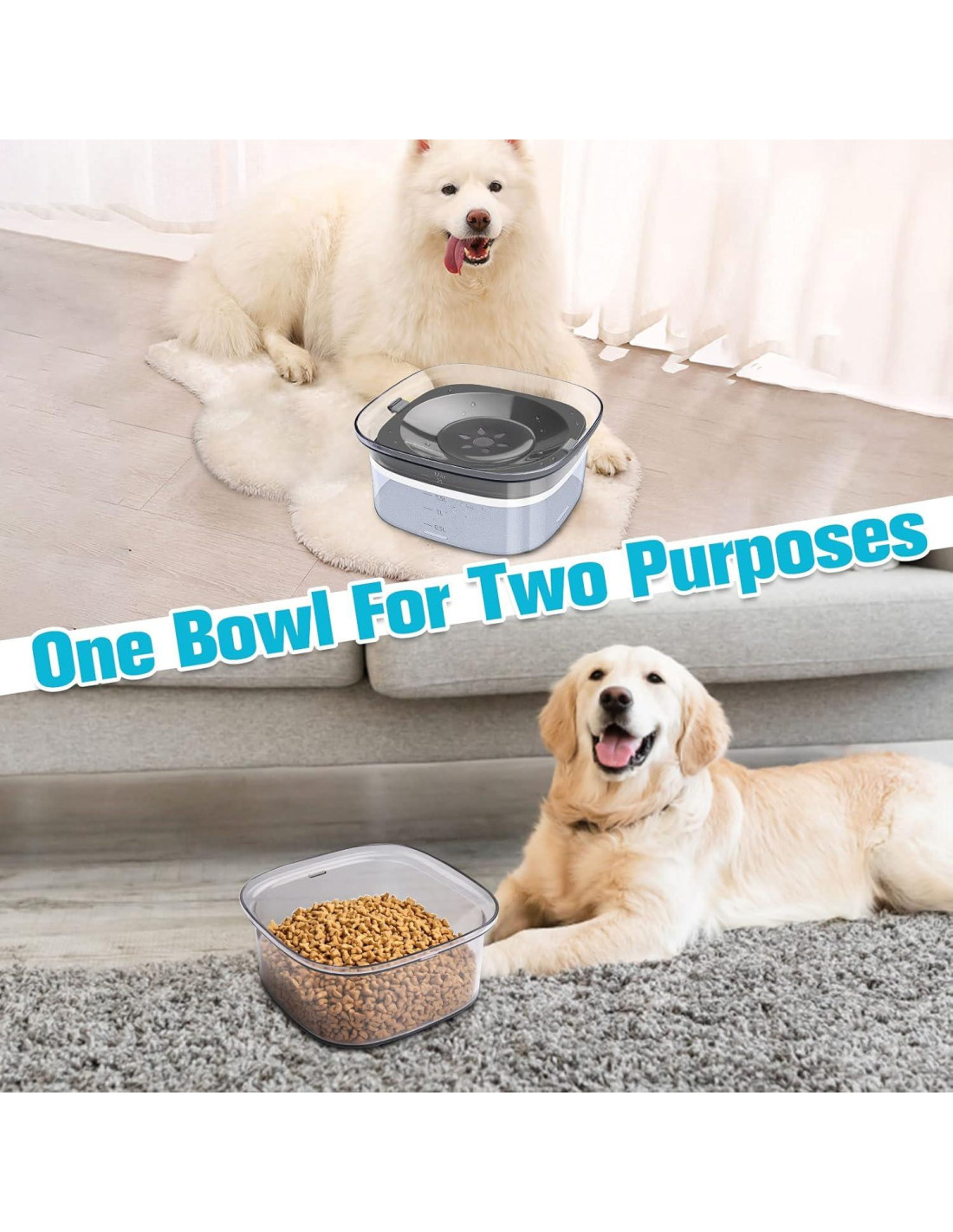 - Capacidad Grande de 70oz/2L: Nuestro tazón de agua para perros es un diseño patentado. Tiene una capacidad grande de 70oz/2L, ideal para las necesidades de agua de perros y hogares con múltiples mascotas, sin necesidad de reponer el agua con frecuencia. Mantén a tus mascotas bebiendo suficiente agua.